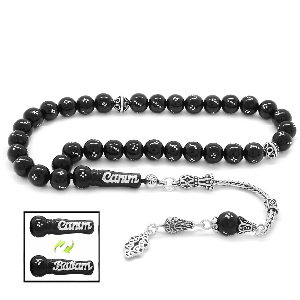Rus Oltu Tesbih - 925 Ayar Gümüş Püsküllü - İmamesi İsme Özel Yazılı - Küre Kesim