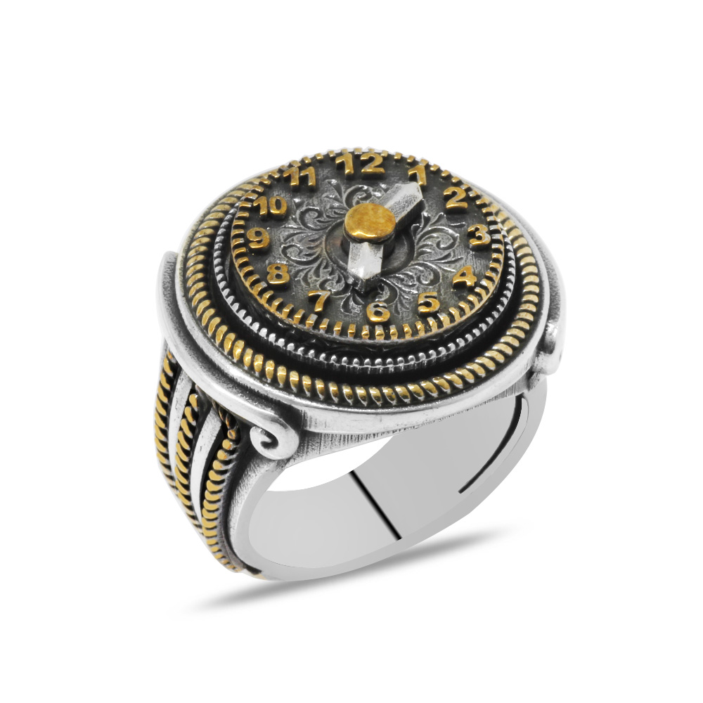 Saat Tasarım Halat Zincir Detaylı 925 Ayar Gümüş Erkek Yüzük - 1