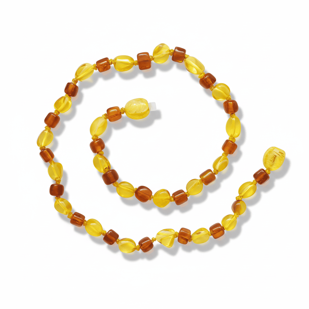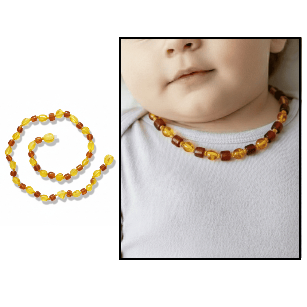 Sarı Kırmızı Renk Doğal Form Damla Kehribar Taşlı Bebek Diş Kolyesi