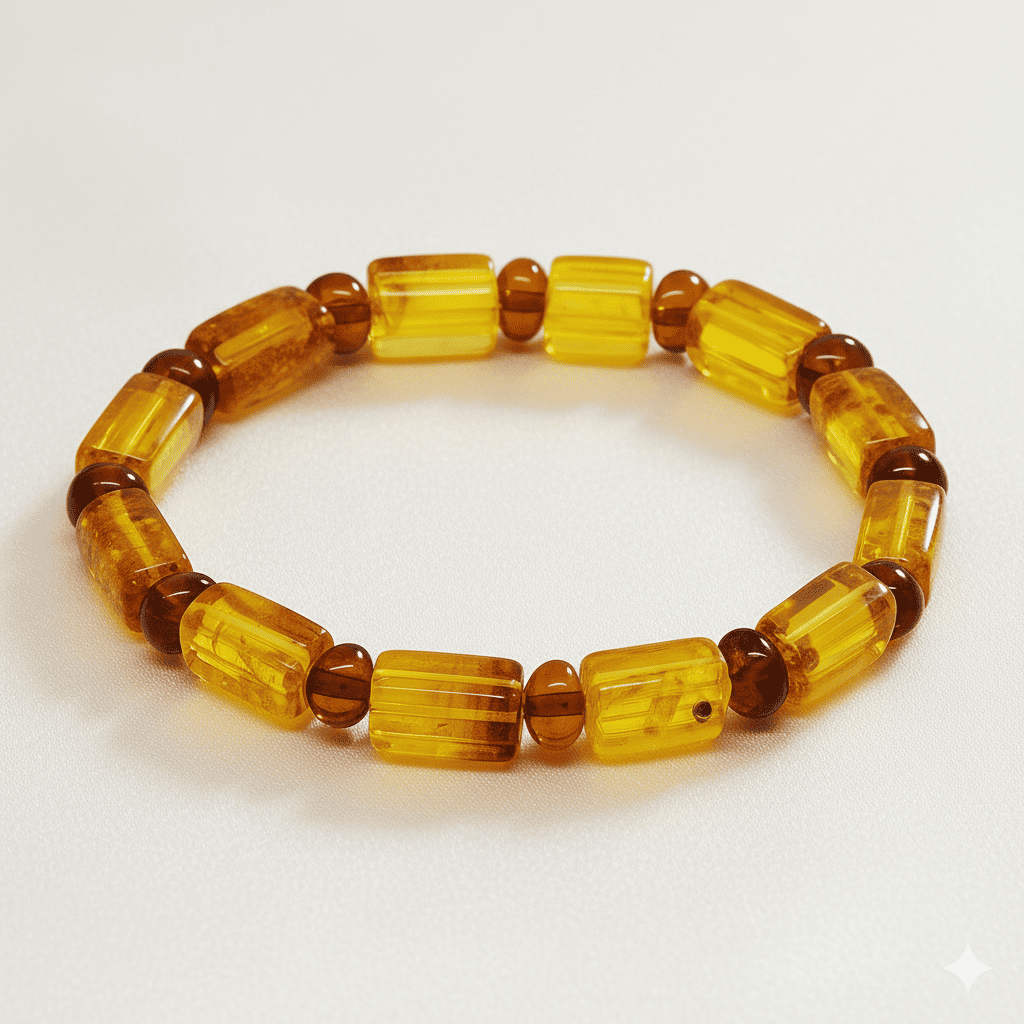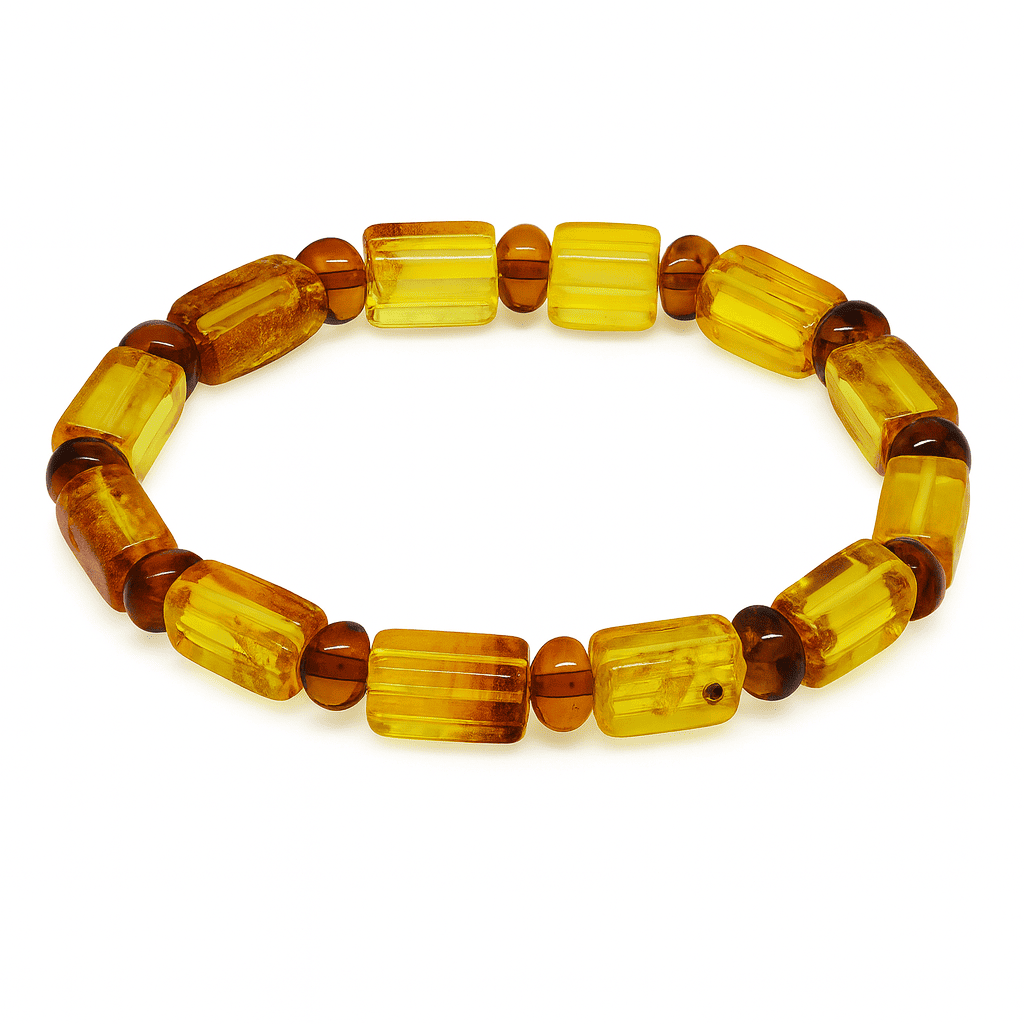 Sarı Soft Kırmızı Silindir Kesim Doğal Damla Kehribar Kadın Bileklik