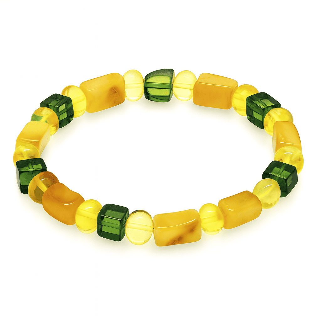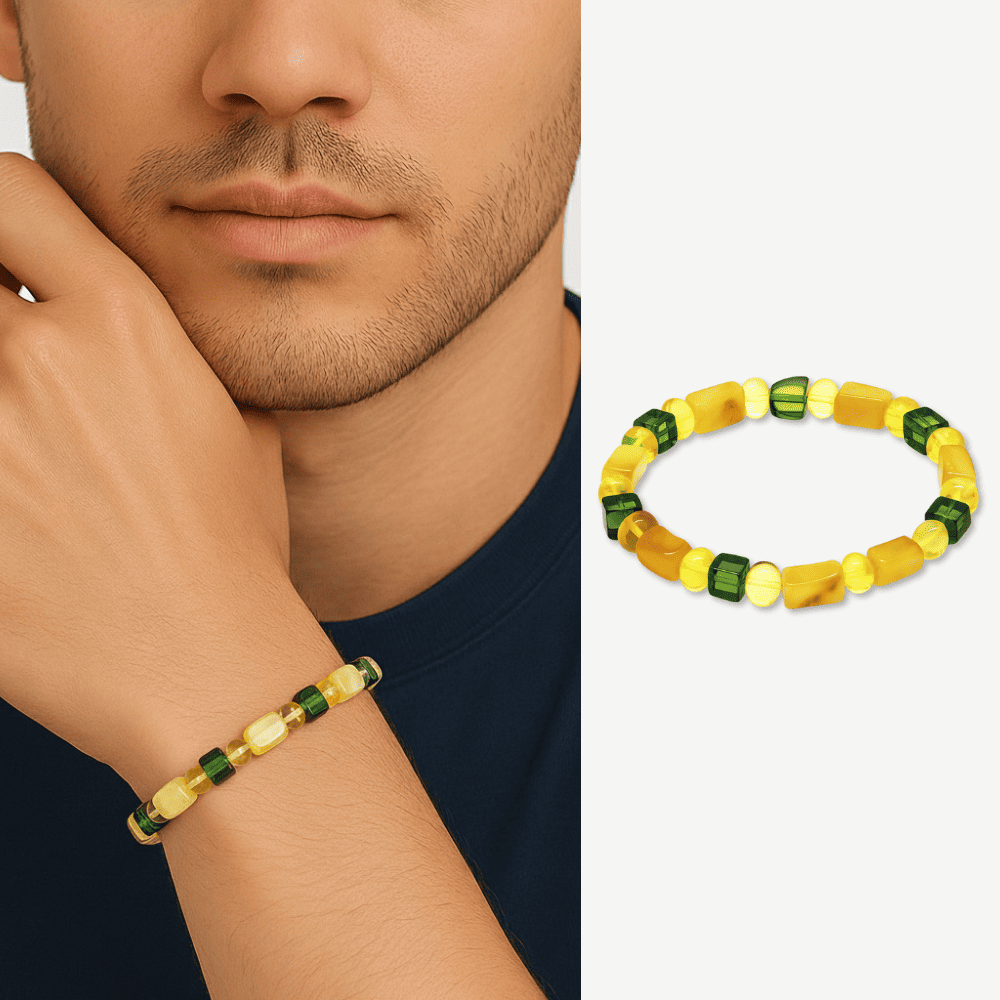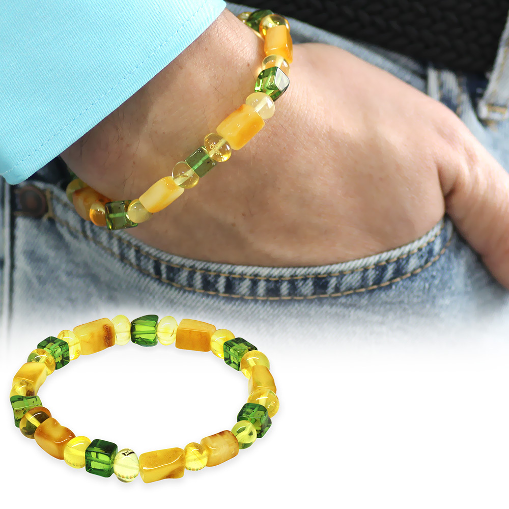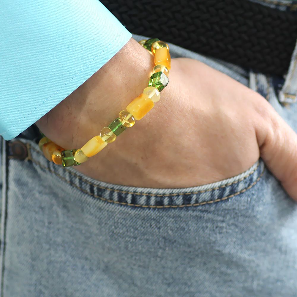 Sarı Yeşil Silindir Küp Kesim Doğal Damla Kehribar Erkek Bileklik