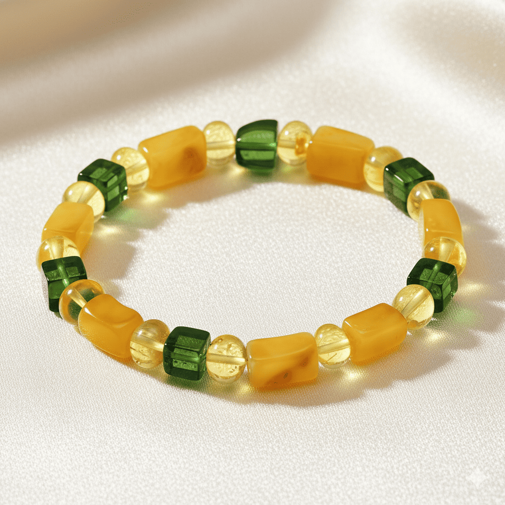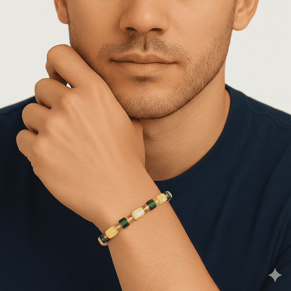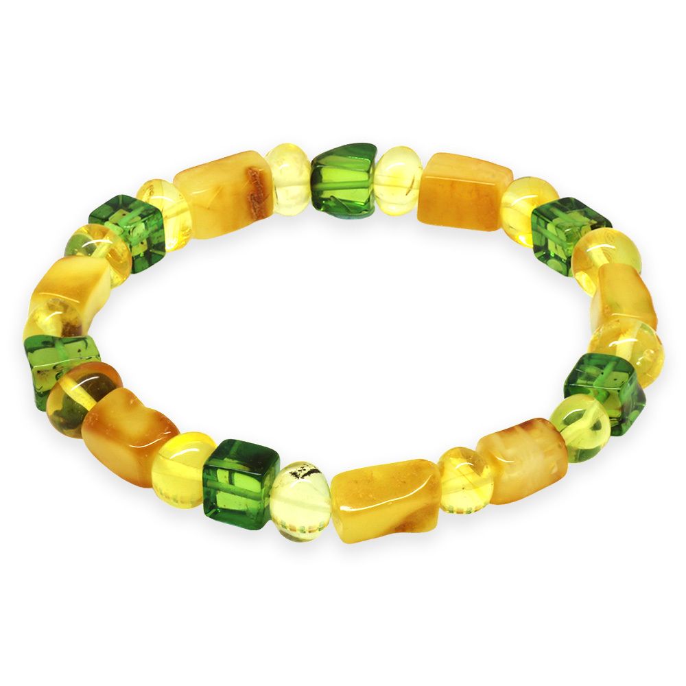 Sarı Yeşil Silindir Küp Kesim Doğal Damla Kehribar Erkek Bileklik