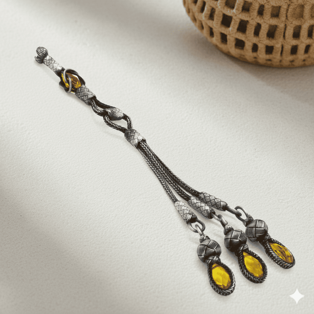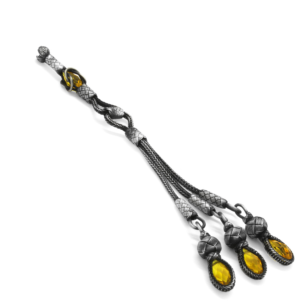 Sarı Zirkon Taşlı 3 lü Uzun Model 1000 Ayar Gümüş Kazaz Püskül