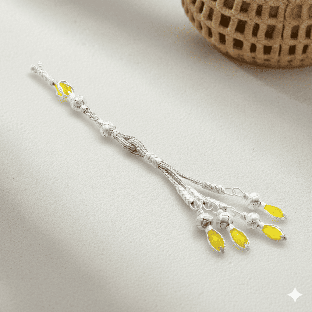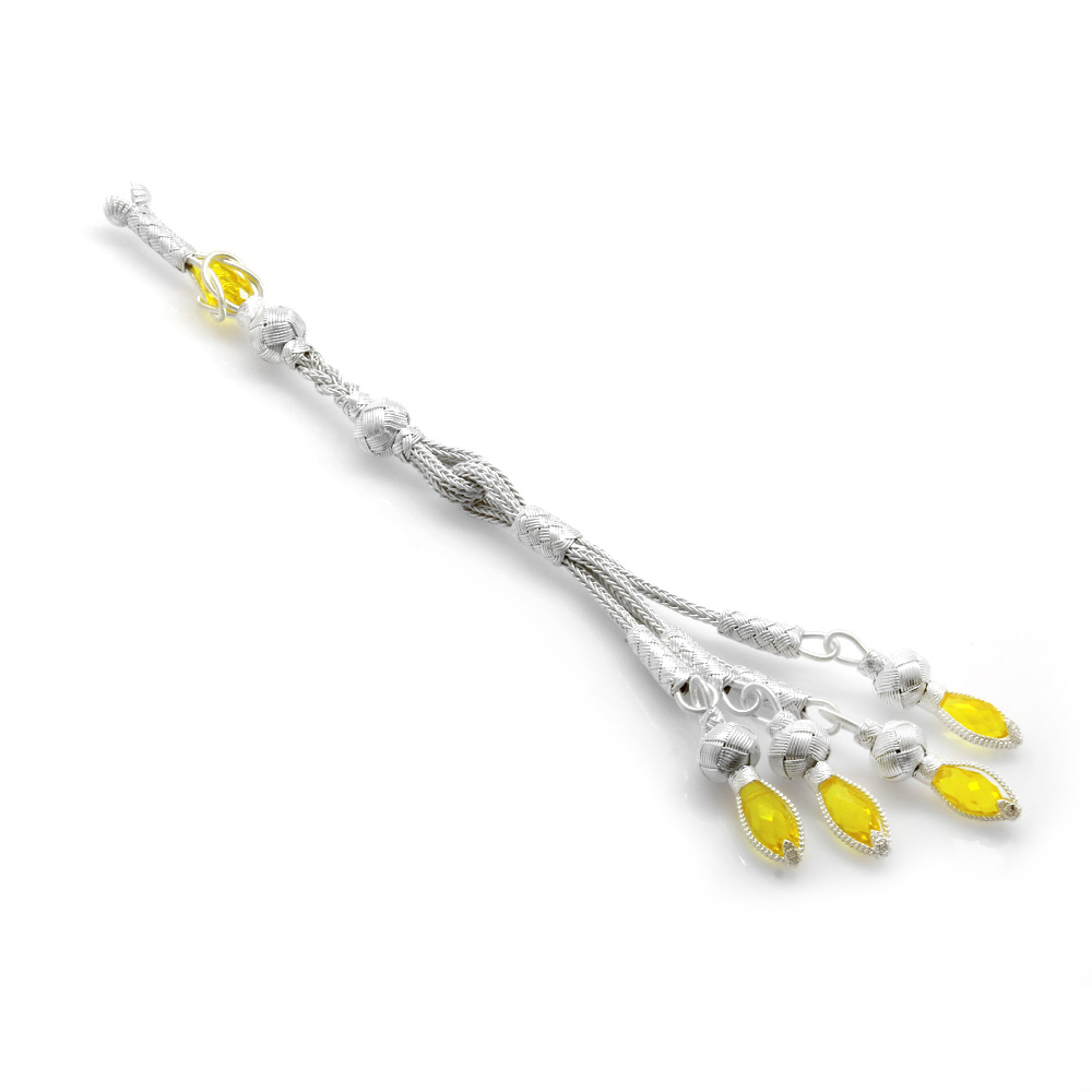 Sarı Zirkon Taşlı Uzun Model Beyaz Renk 4 lü 1000 Ayar Gümüş Kazaz Püskül