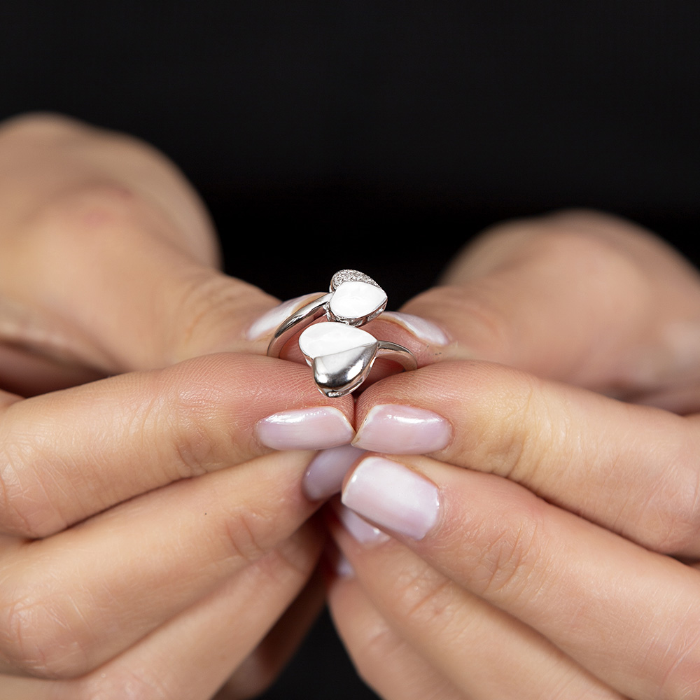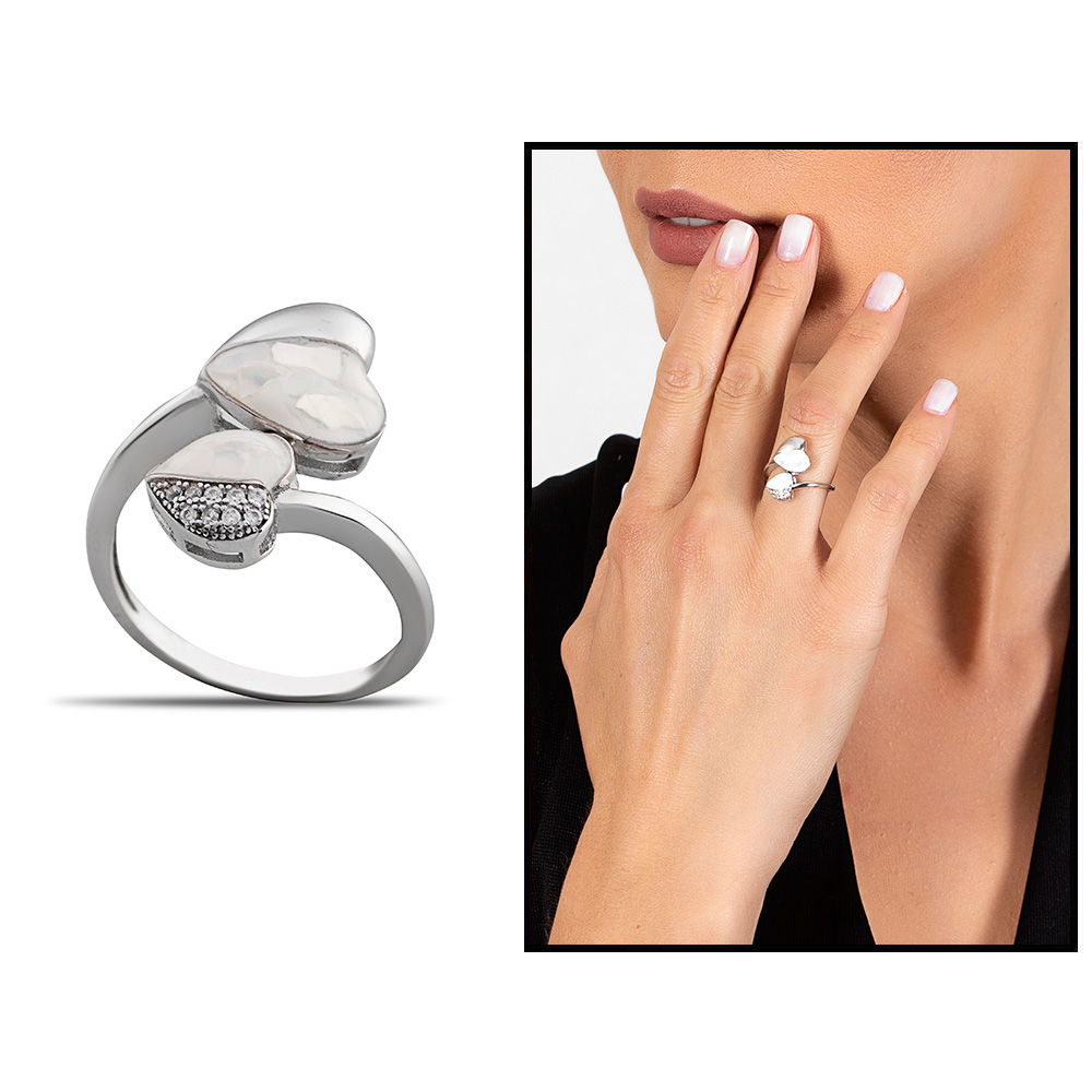 Sedef Taşlı Kalp Tasarım 925 Ayar Gümüş Kadın Yüzük