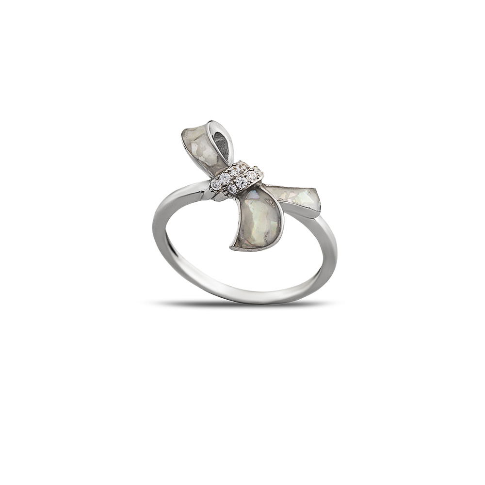 Sedef Taşlı Kurdela Tasarım 925 Ayar Gümüş Kadın Yüzük
