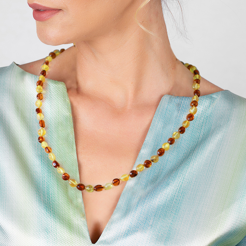 Çok Renkli Mat Doğal Damla Kehribar Bayan Kolye - 1