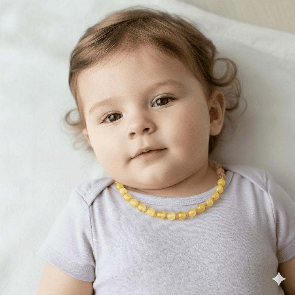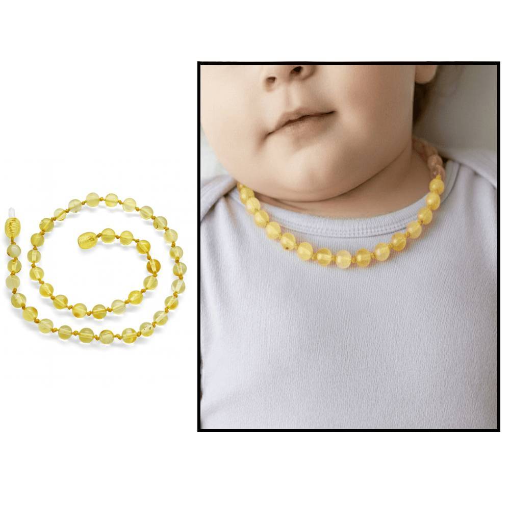 Şeffaf Açık Sarı Doğal Damla Kehribar Taşlı Bebek Diş Kolyesi - 1