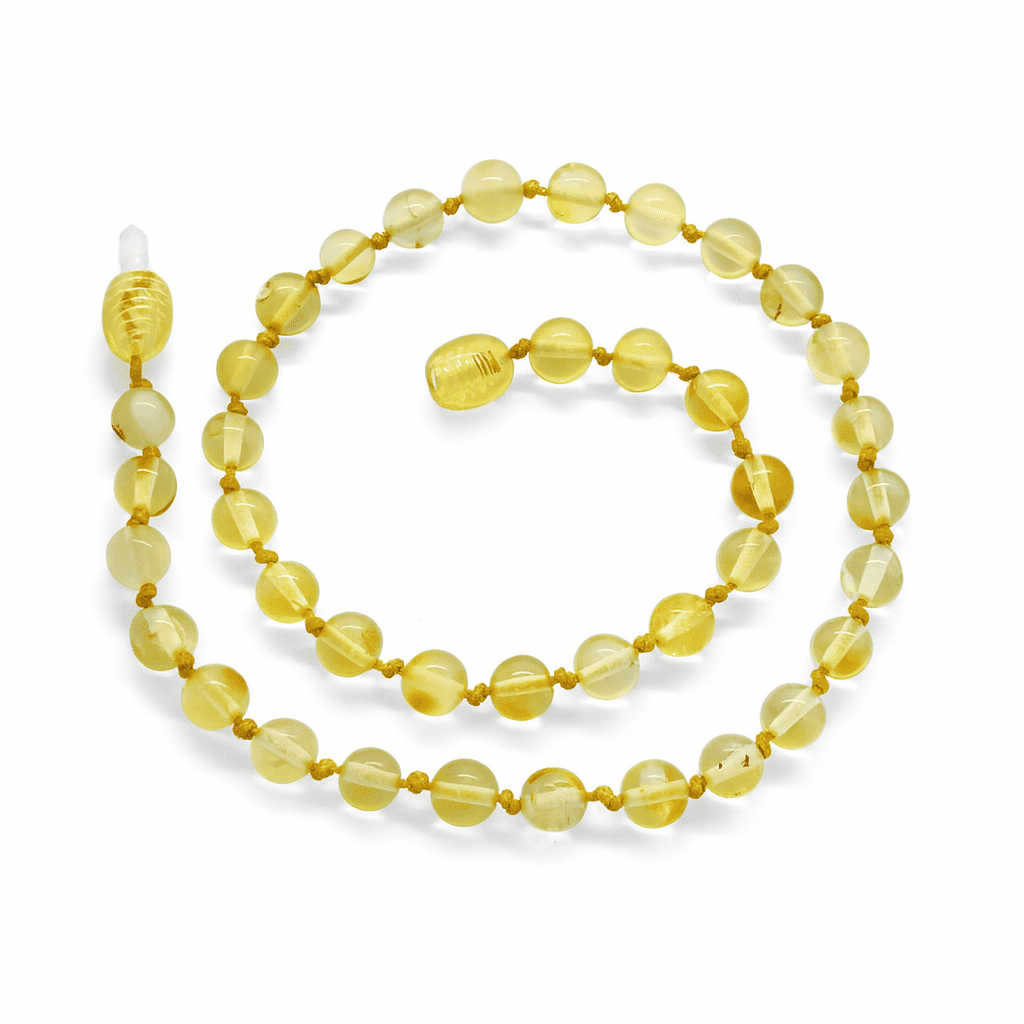 Şeffaf Açık Sarı Doğal Damla Kehribar Taşlı Bebek Diş Kolyesi - 4