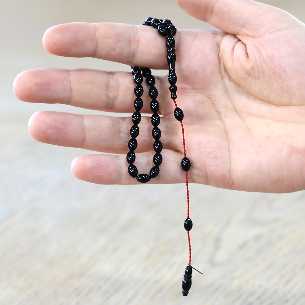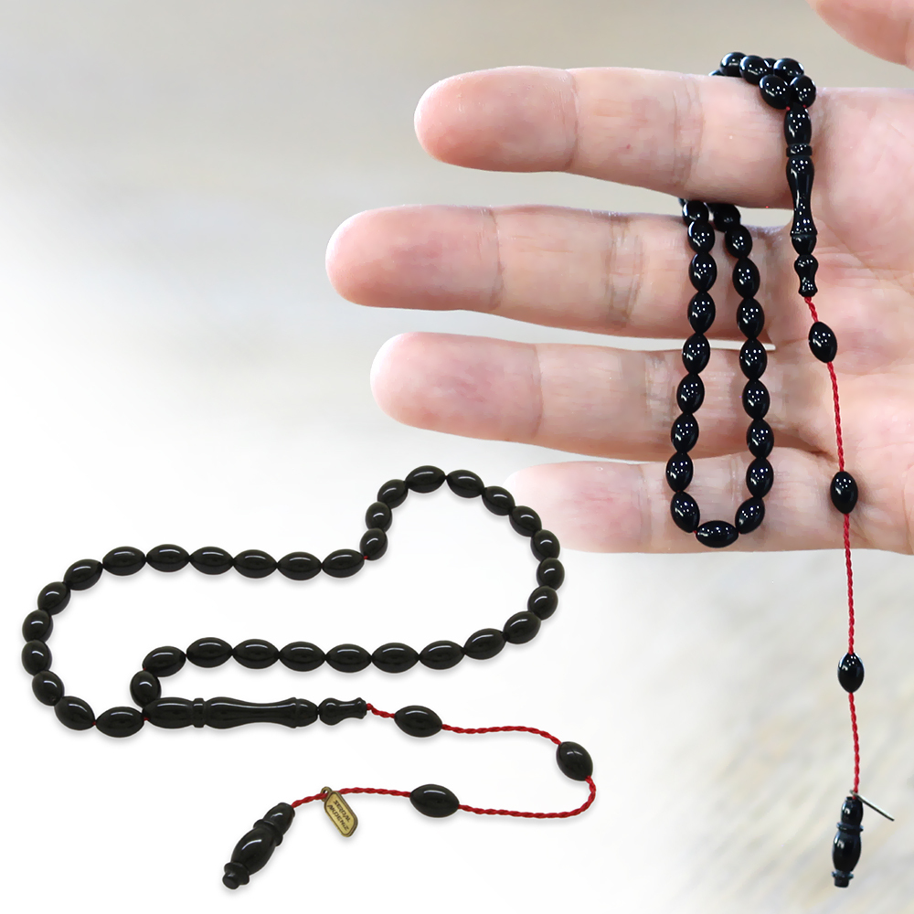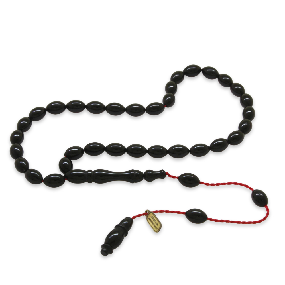 Sıkma Kehribar Tesbih - Sistemli - Mini Boy - Siyah Renk - Arpa Kesim
