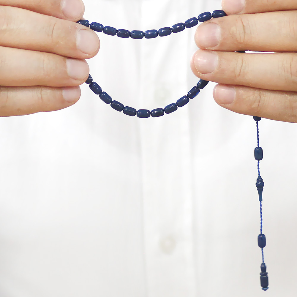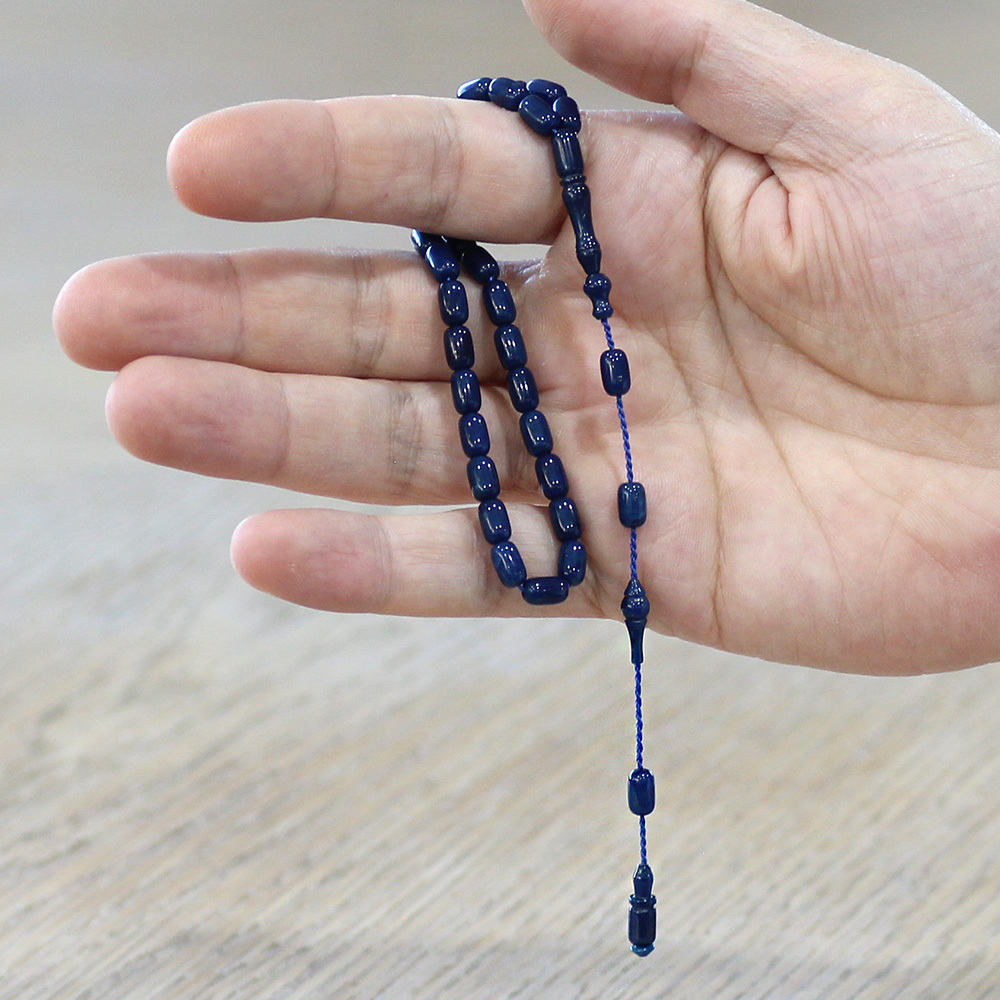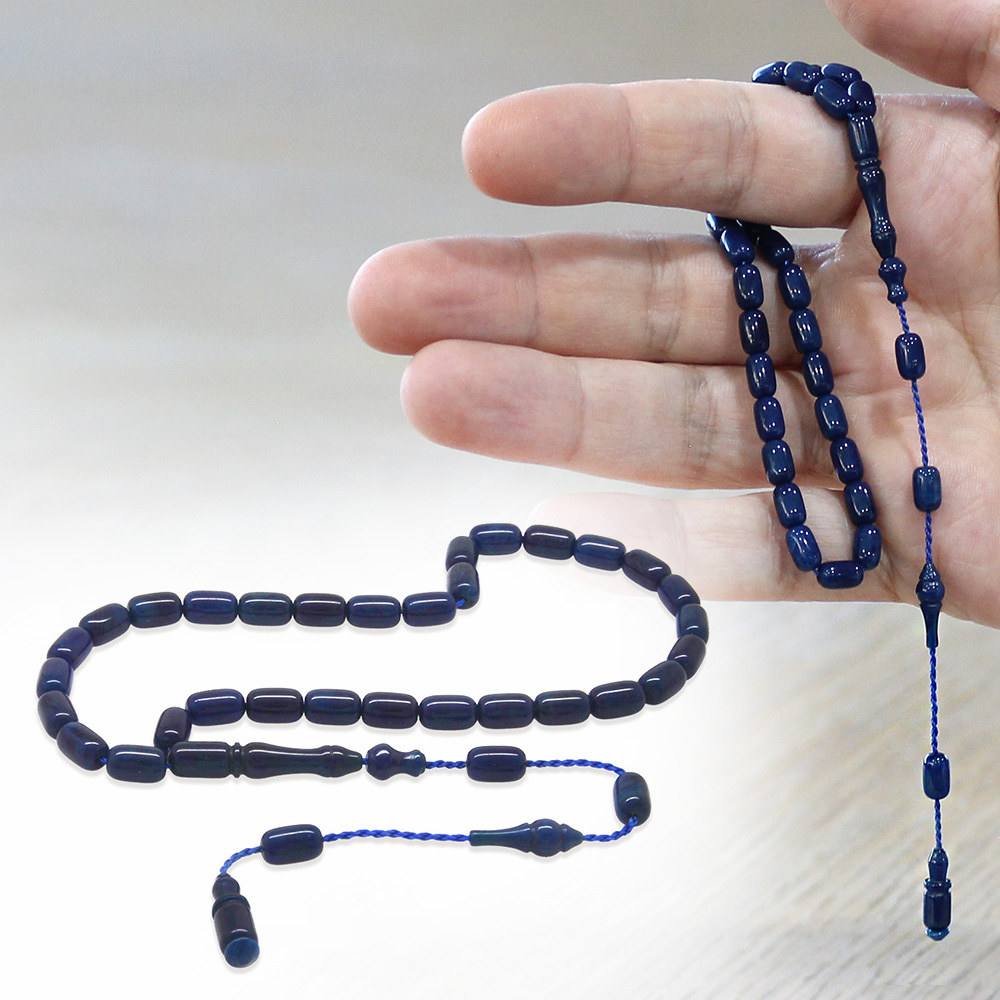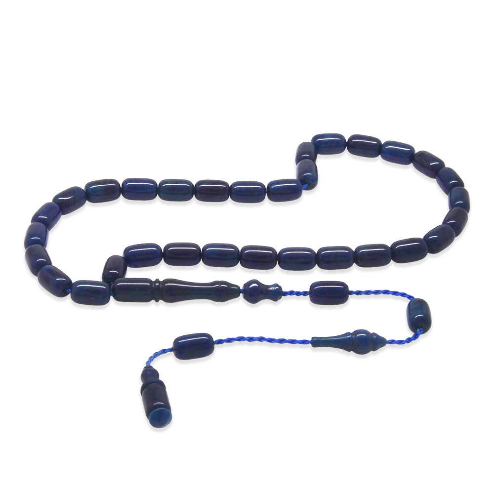 Sıkma Kehribar Tesbih - Sistemli Tasarım - Mini Boy - Mavi Beyaz Hareli - Kapsül Kesim