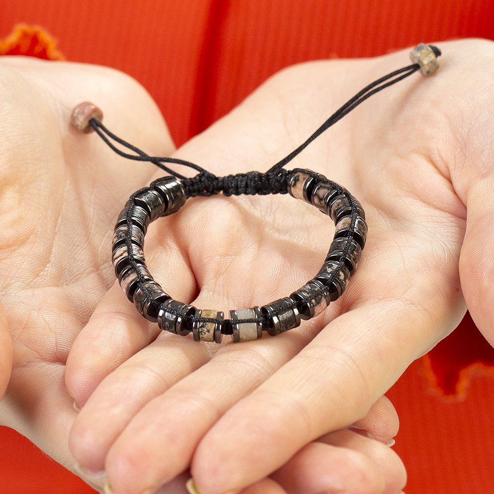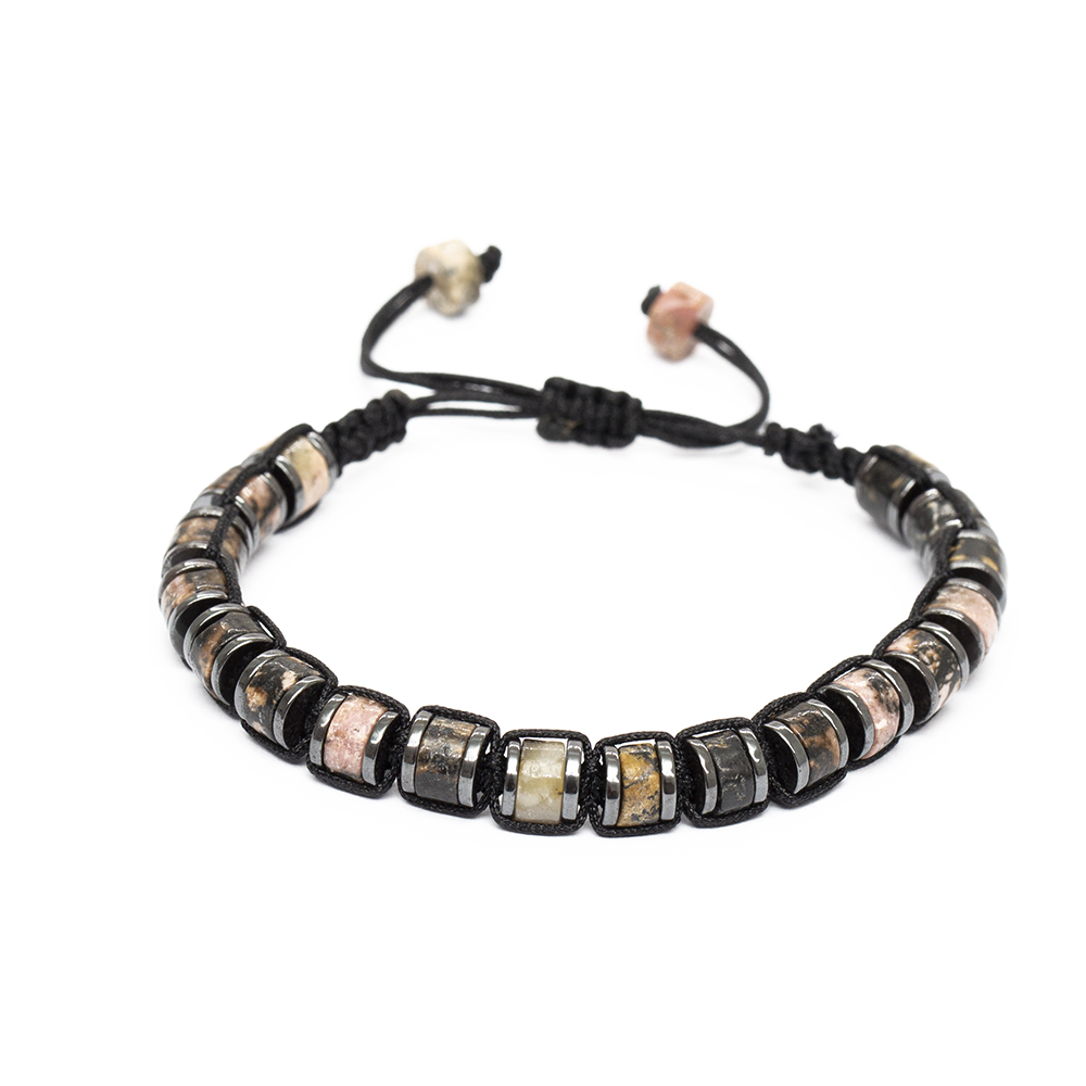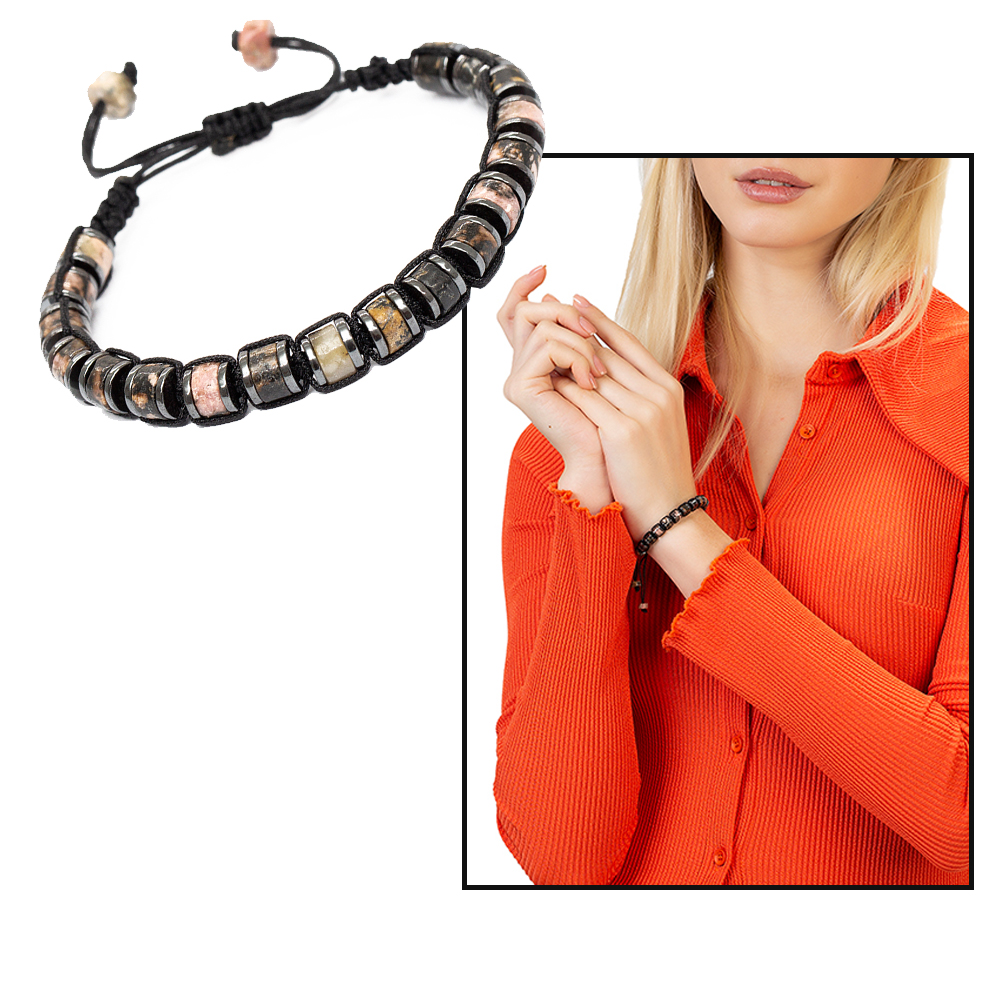 Silindir Kesim Makrome Örgülü Kuvars Hematit Kombinli Doğaltaş Kadın Bileklik