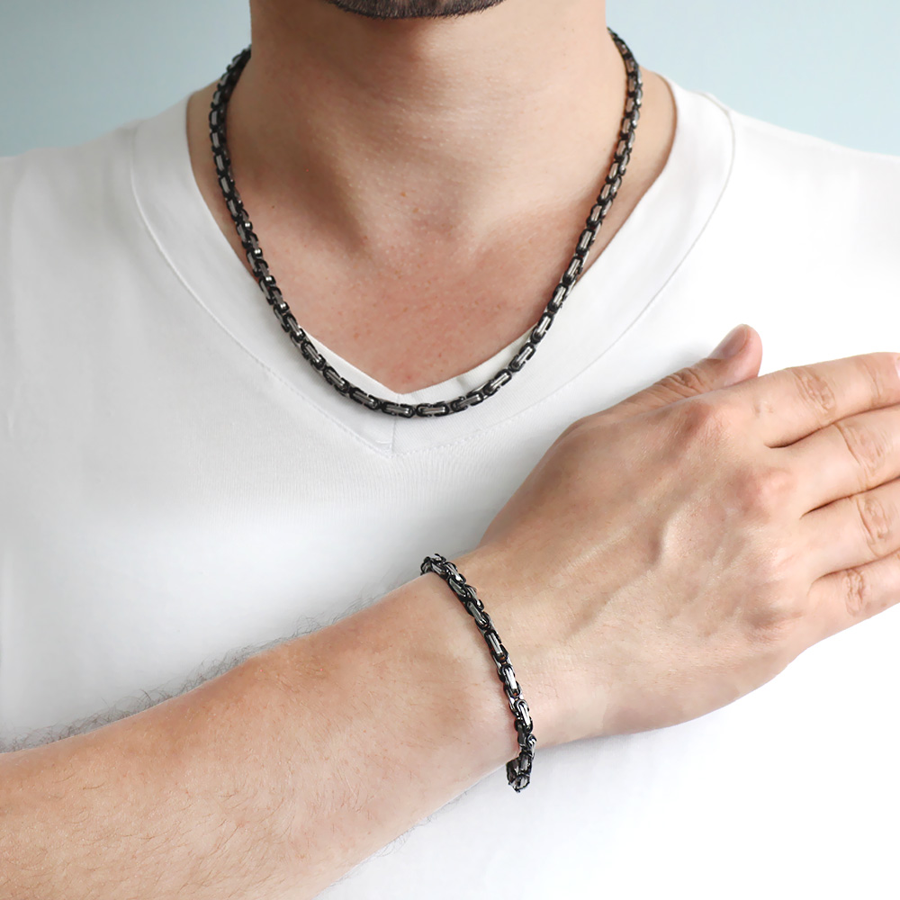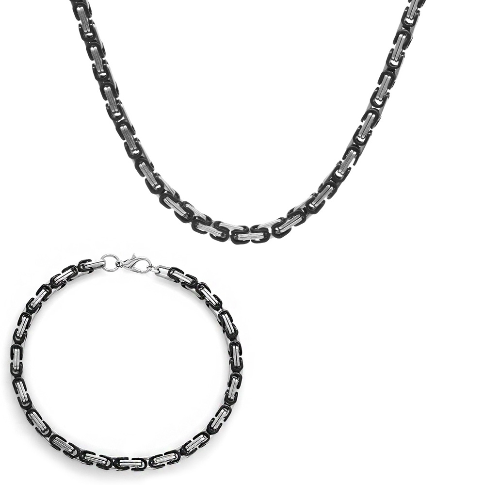 Gümüş Siyah Renk 917L Çelik Erkek Kral Zincir ve Bileklik Kombini