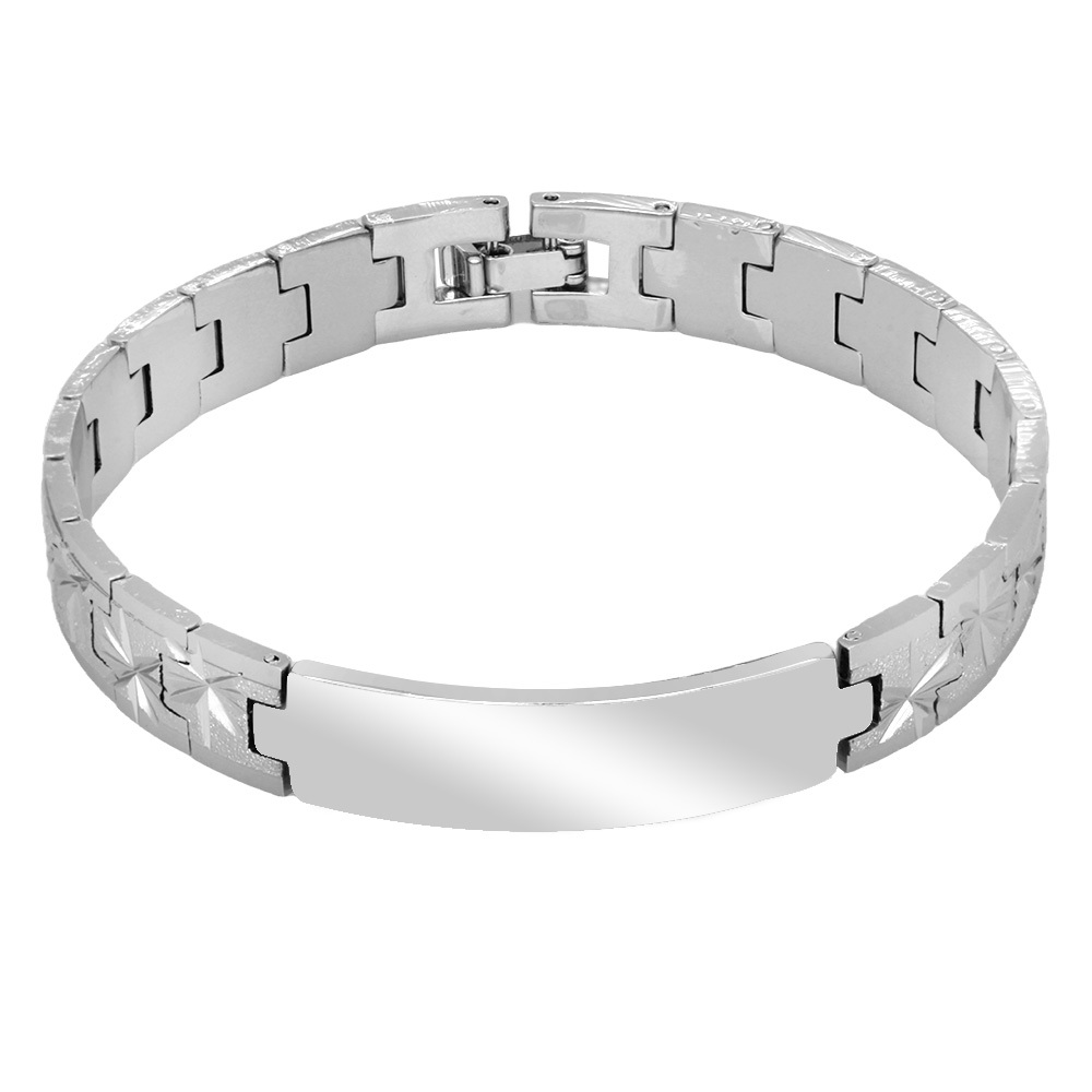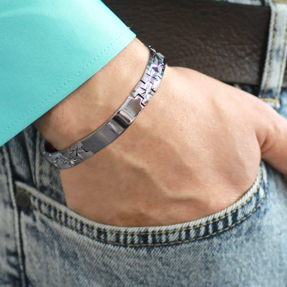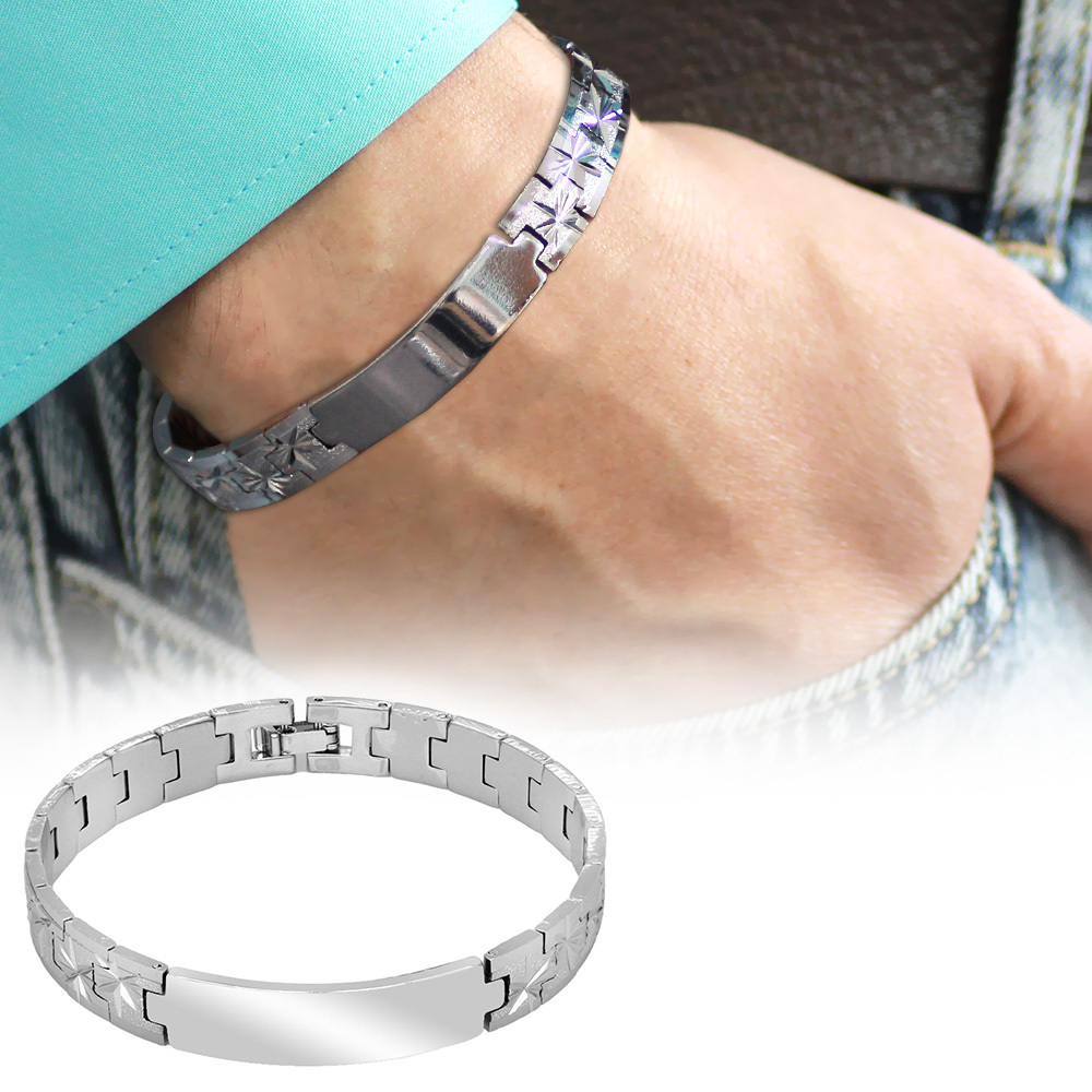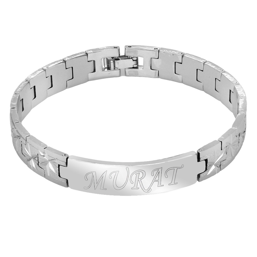 Gümüş Renk Alev Detaylı İsme Özel Yazılı Erkek Metal Bileklik - 1