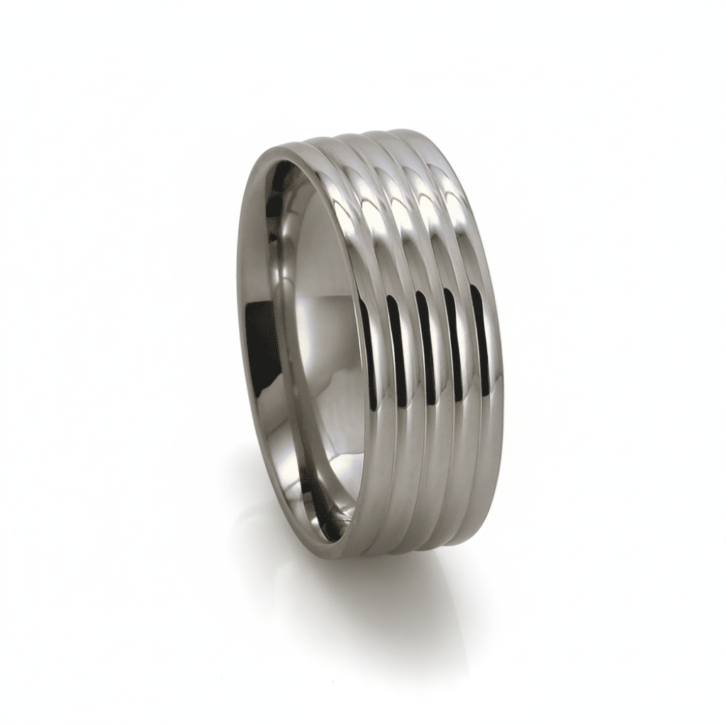 Gümüş Renk Beş Sıra Tasarım 316L Kalite Paslanmaz Çelik Kadın Yüzük Alyans - 17 Ölçü