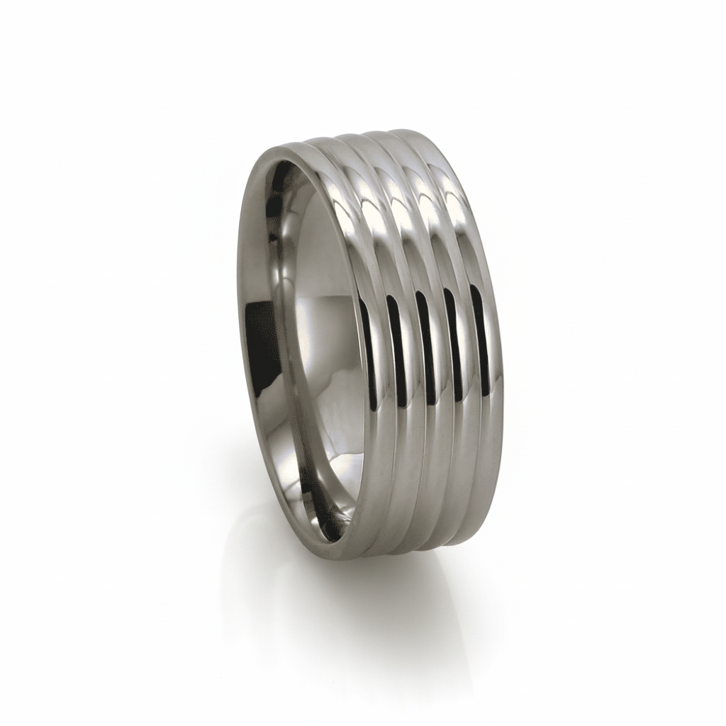 Gümüş Renk Beş Sıra Tasarım 316L Kalite Paslanmaz Çelik Kadın Yüzük Alyans - 21 Ölçü