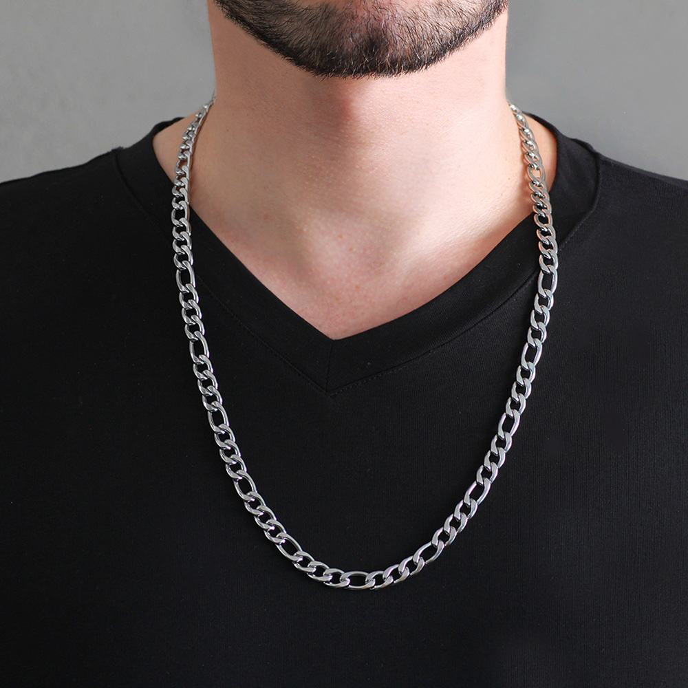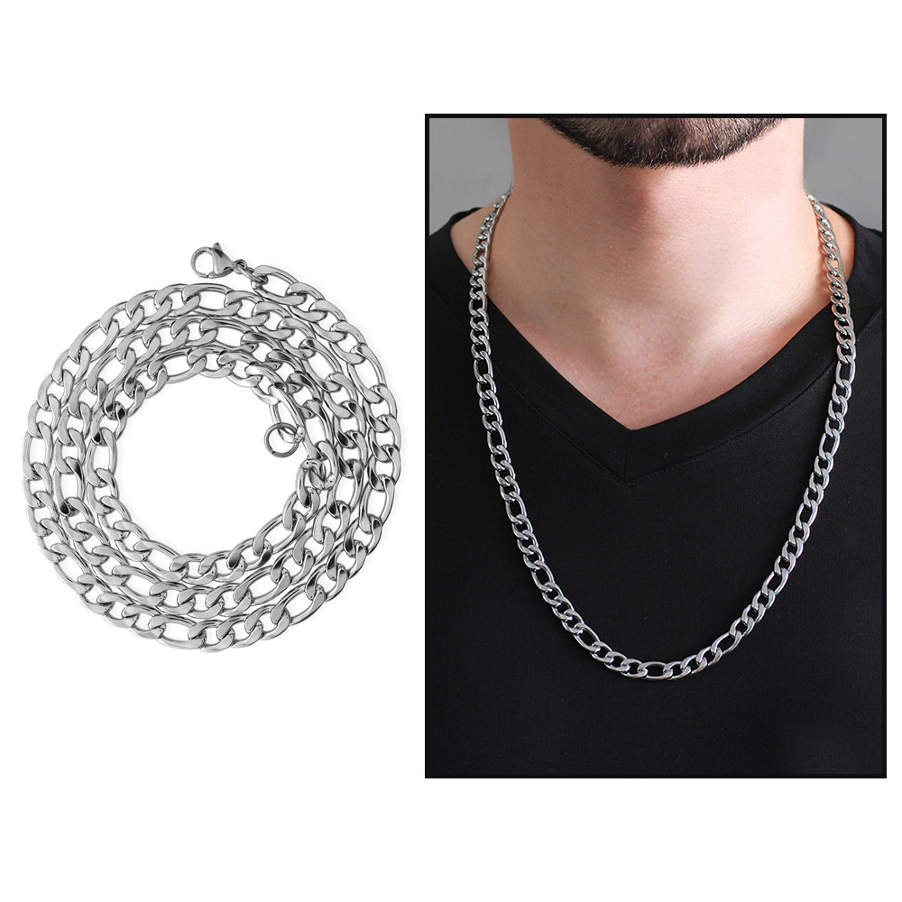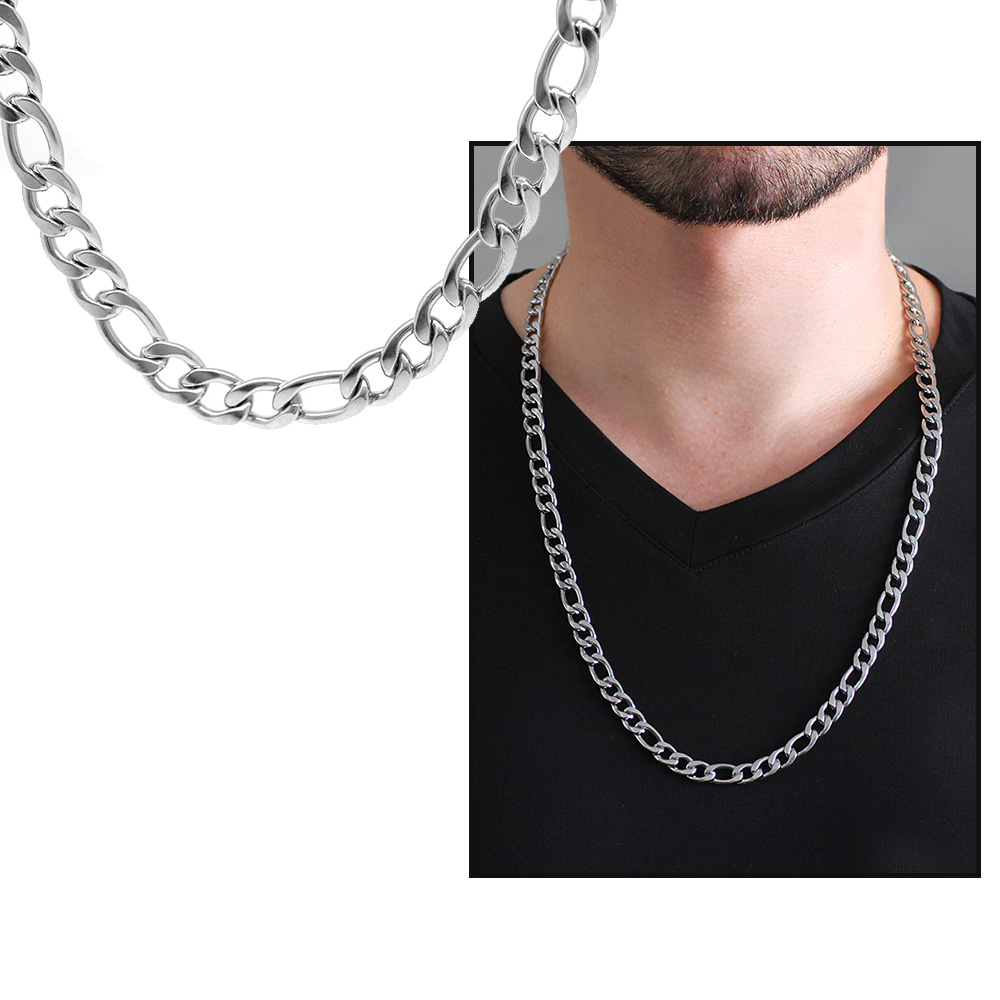 Gümüş Renk Çelik Erkek Figaro Zincir Kolye - 1