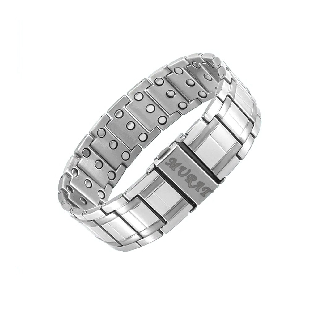 Gümüş Renk İsme Özel Yazılı Titanyum Manyetik Terapi Sağlık Bilekliği - 1