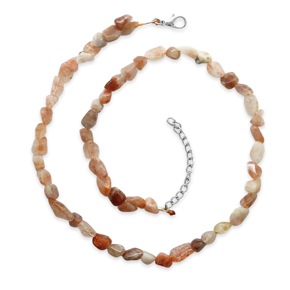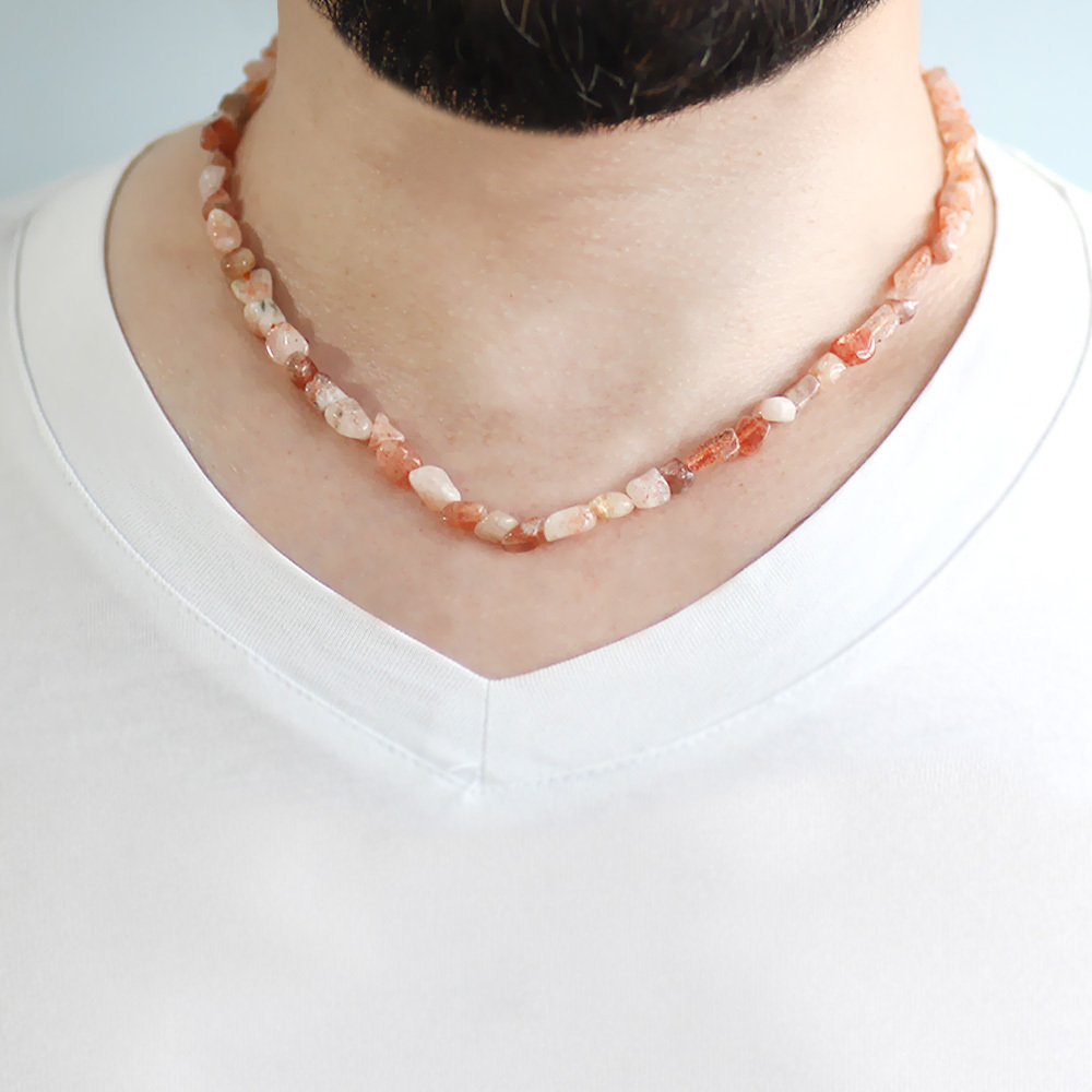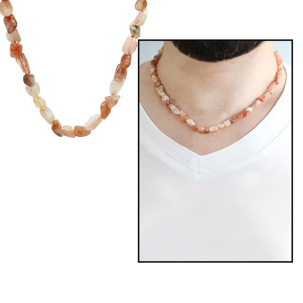 Gümüş Renk Metal Zincirli Amorf Güneş Taşı Doğaltaş Erkek Kolye