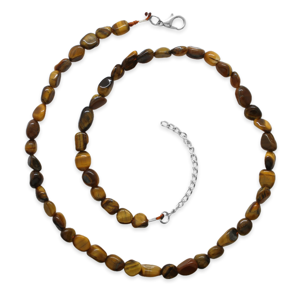 Gümüş Renk Metal Zincirli Amorf Kaplan Gözü Doğaltaş Erkek Kolye