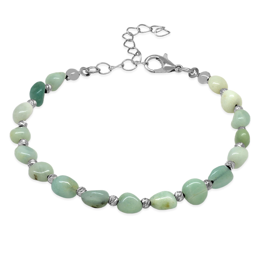 Gümüş Renk Metal Zincirli Dorika Top Süslemeli Amorf Amazonit Doğaltaş Erkek Bileklik