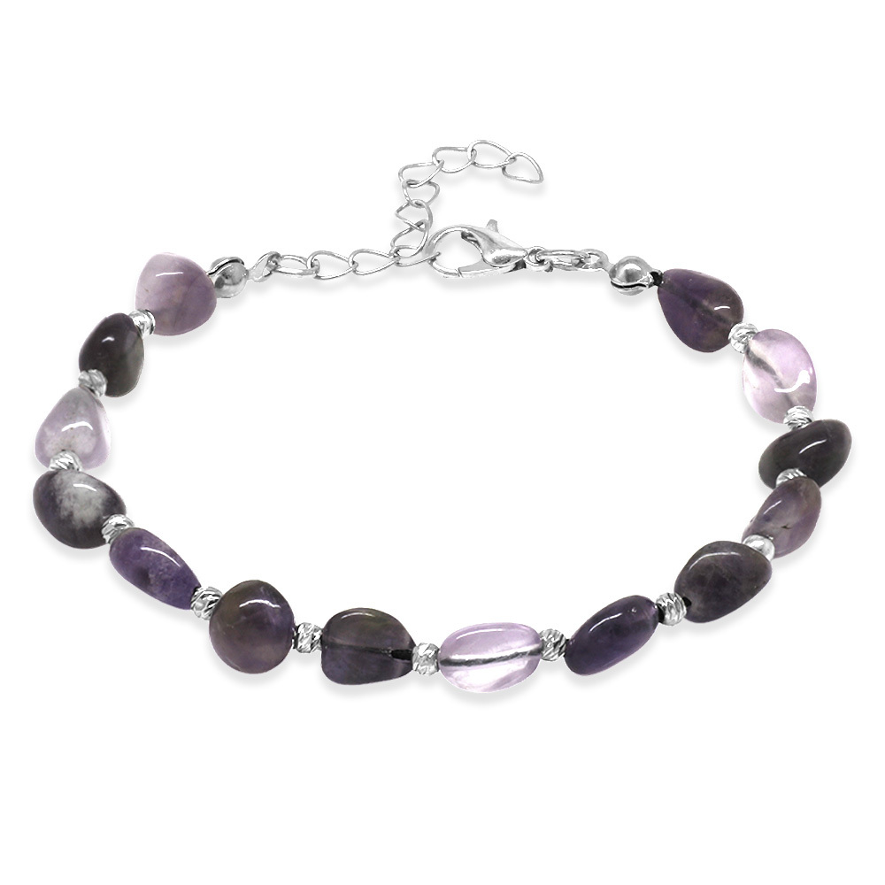 Gümüş Renk Metal Zincirli Dorika Top Süslemeli Amorf Ametist Doğaltaş Erkek Bileklik