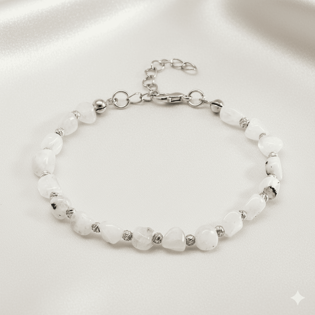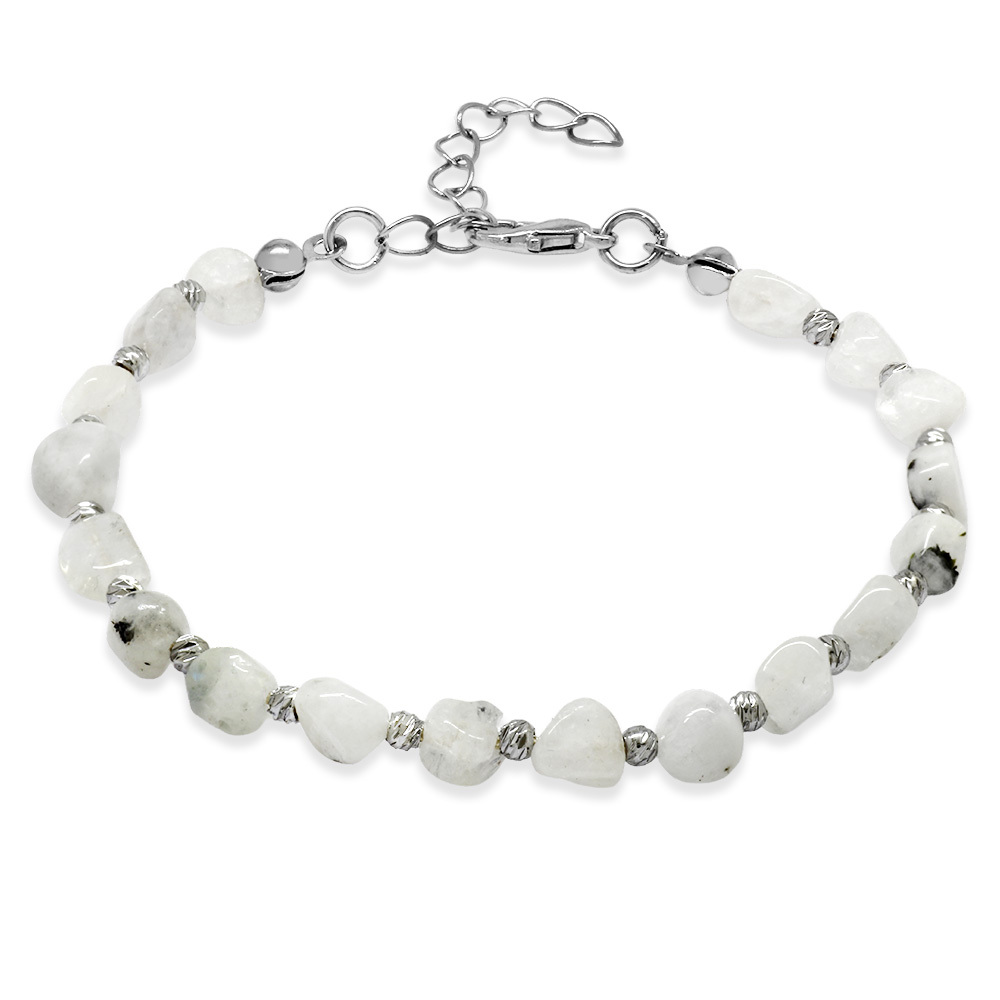 Gümüş Renk Metal Zincirli Dorika Top Süslemeli Amorf Ay Taşı Doğaltaş Erkek Bileklik