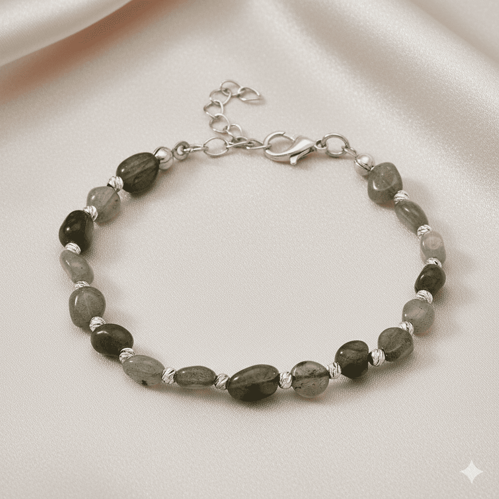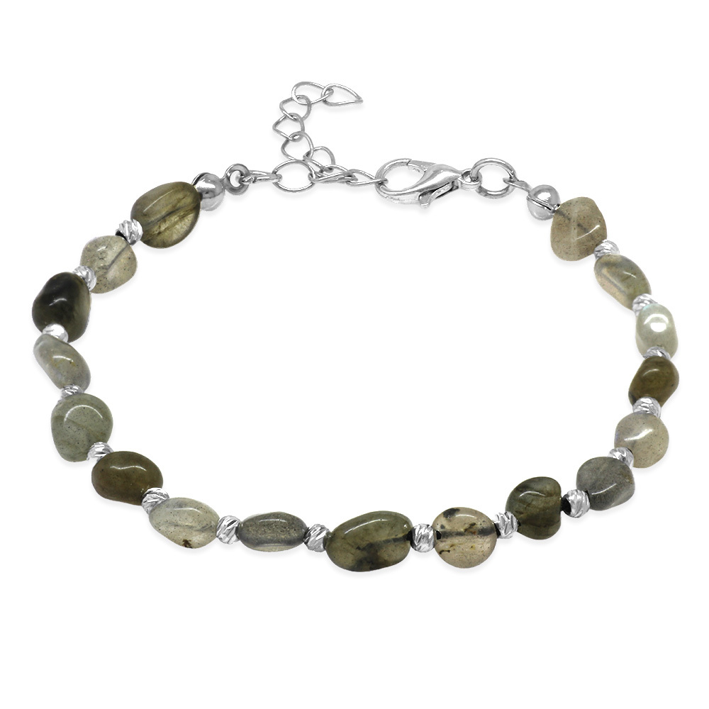Gümüş Renk Metal Zincirli Dorika Top Süslemeli Amorf Labradorit Doğaltaş Erkek Bileklik
