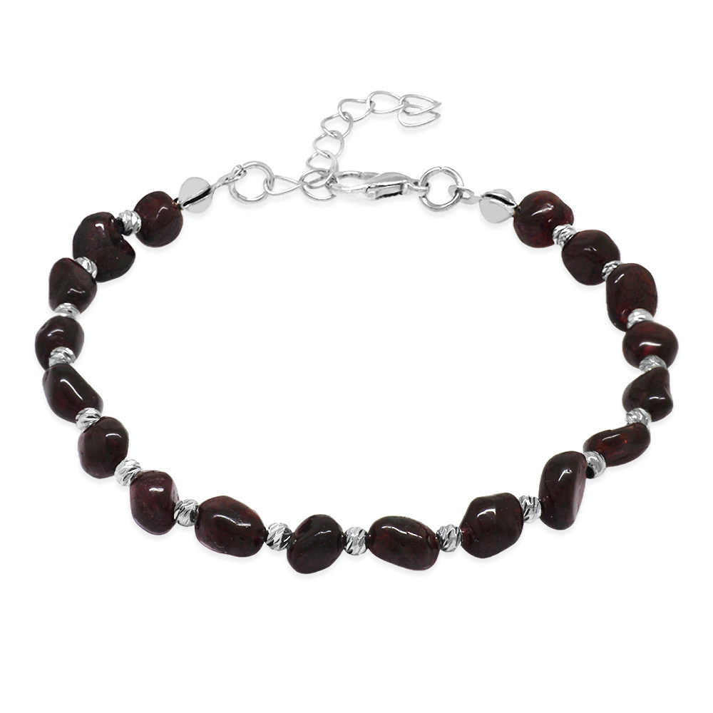 Gümüş Renk Metal Zincirli Dorika Top Süslemeli Amorf Lal Taşı Doğaltaş Erkek Bileklik