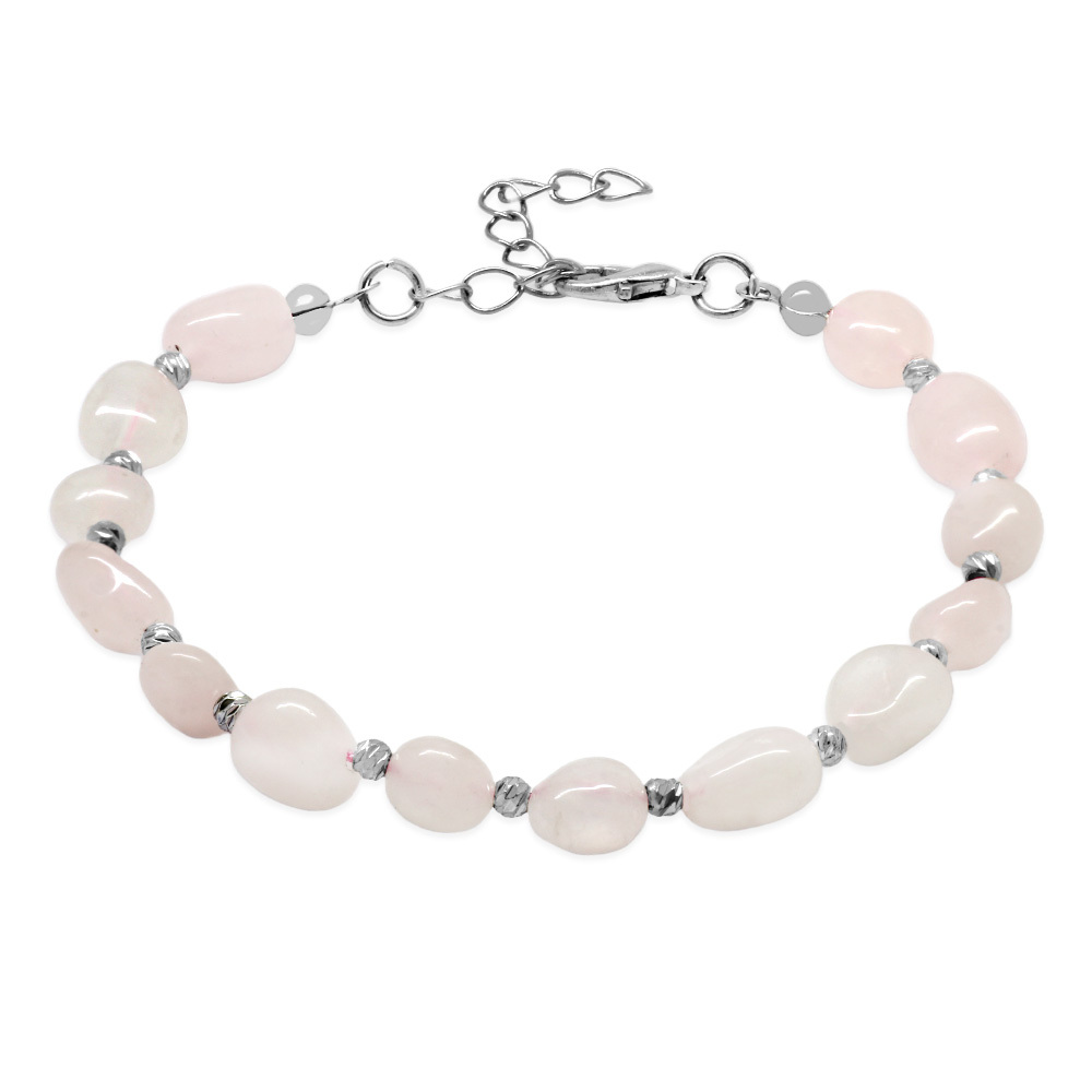 Gümüş Renk Metal Zincirli Dorika Top Süslemeli Amorf Pembe Kuvars Doğaltaş Erkek Bileklik