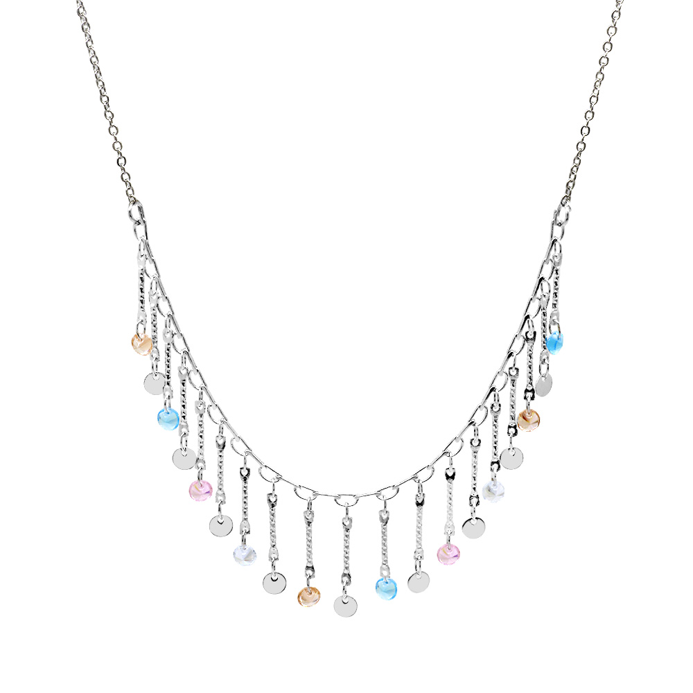 Gümüş Renk Metal Zincirli Çok Renkli Kristal Taş Süslemeli Sallantılı Kadın Kolye