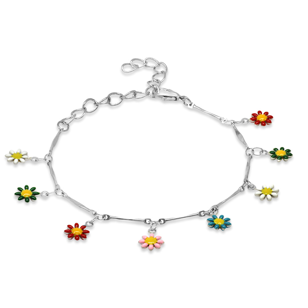 Gümüş Renk Metal Zincirli Çok Renkli Mineli Kır Çiçeği Detaylı Kadın Bileklik