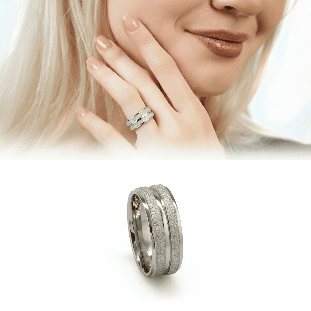 Gümüş Renk Modern Tasarım 316L Kalite Paslanmaz Kadın Çelik Yüzük Alyans - 27 Ölçü