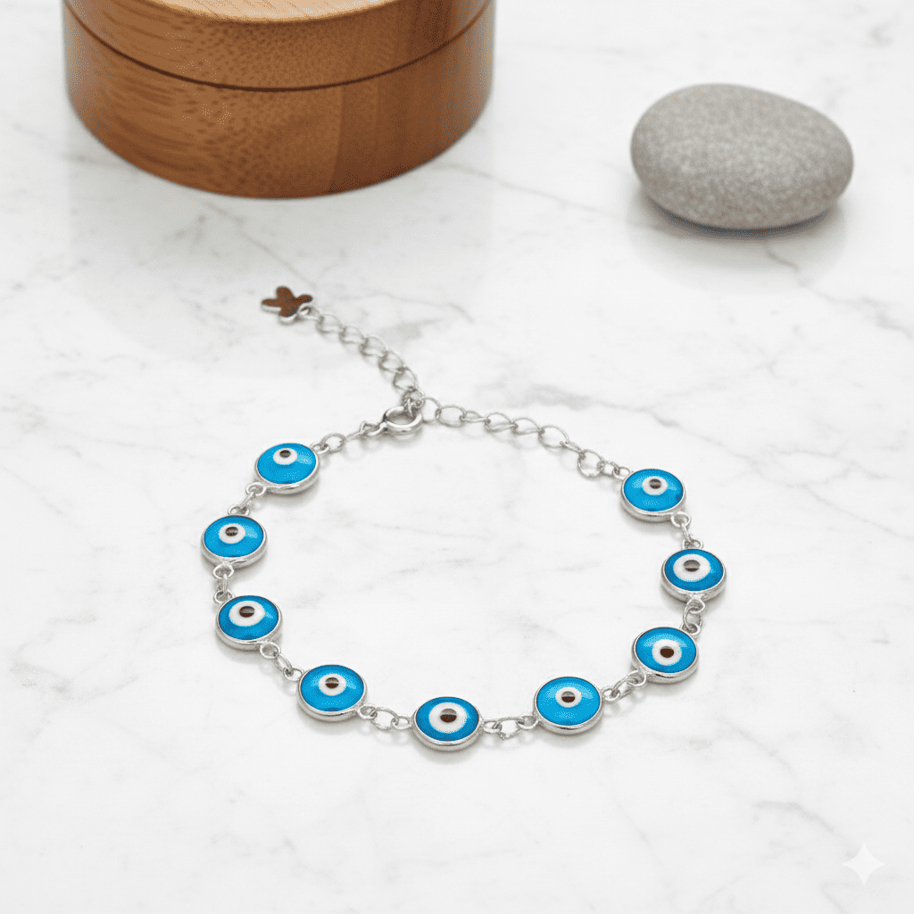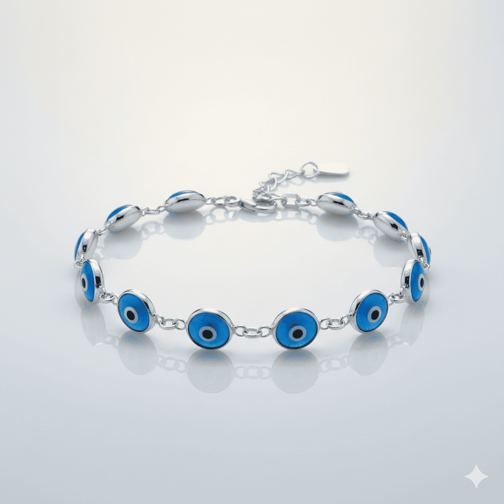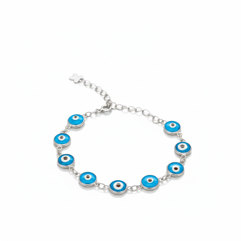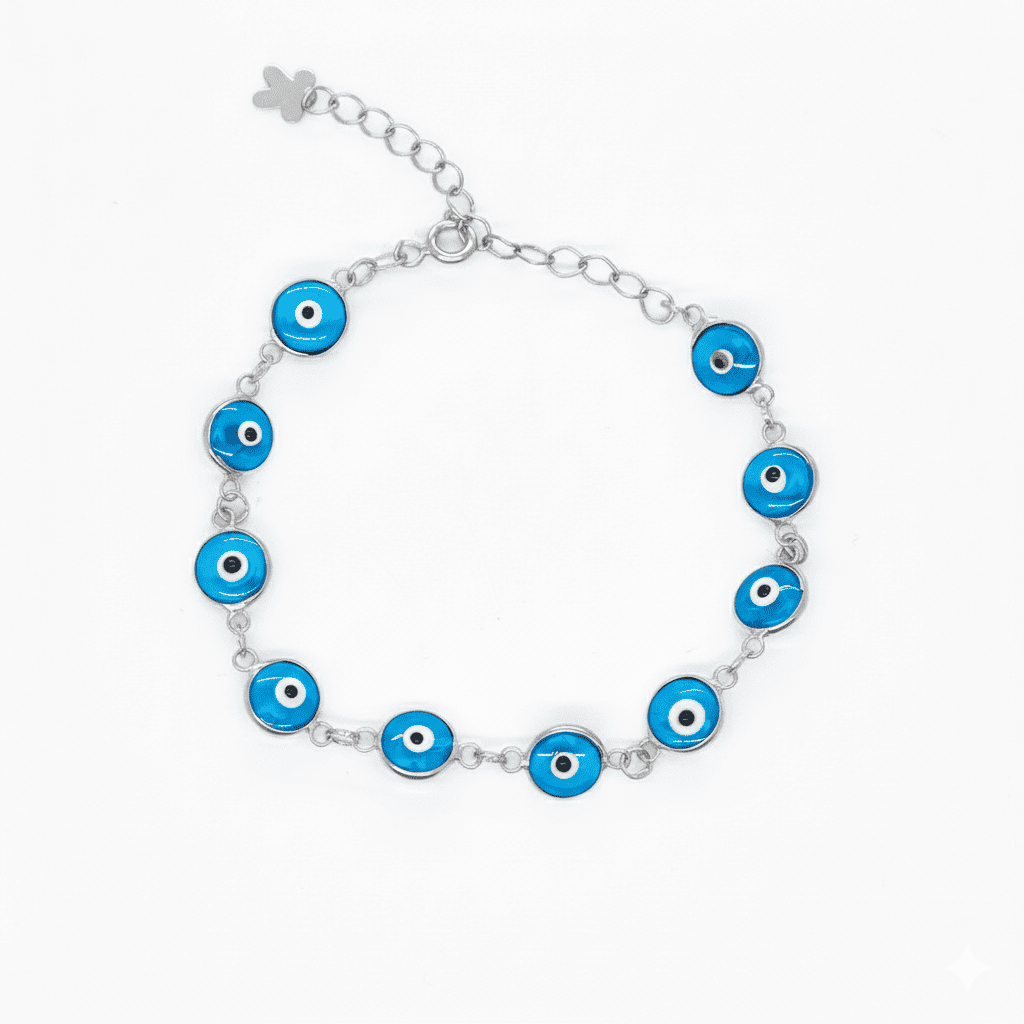 Gümüş Renk Nazar Boncuğu Detaylı 925 Ayar Gümüş Kadın Bileklik