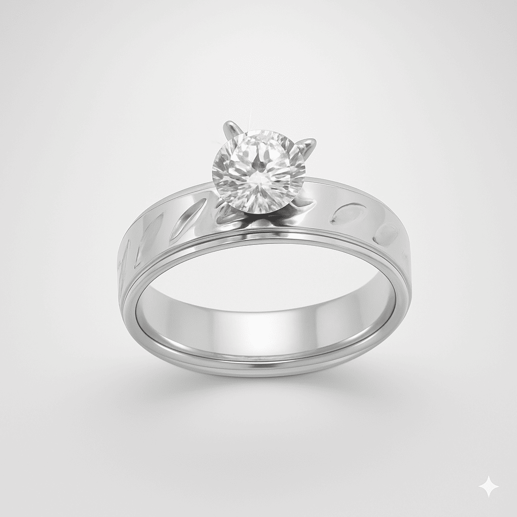 Gümüş Renk Zirkon Taşlı V Tasarım 316L Kalite Paslanmaz Çelik Kadın Tektaş Yüzük - 14 Ölçü