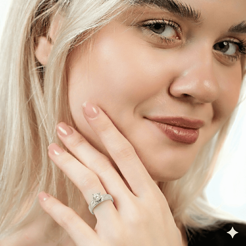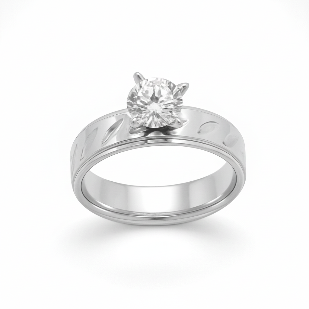Gümüş Renk Zirkon Taşlı V Tasarım 316L Kalite Paslanmaz Çelik Kadın Tektaş Yüzük - 21 Ölçü