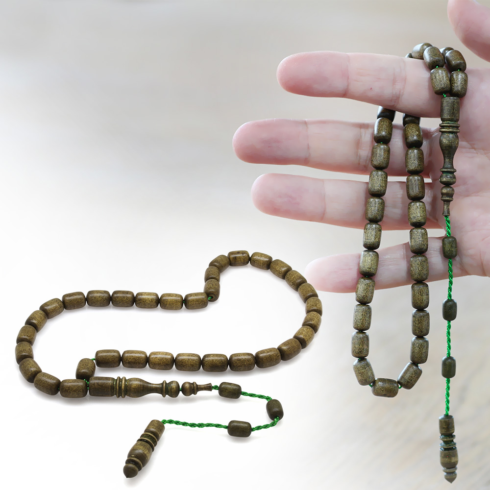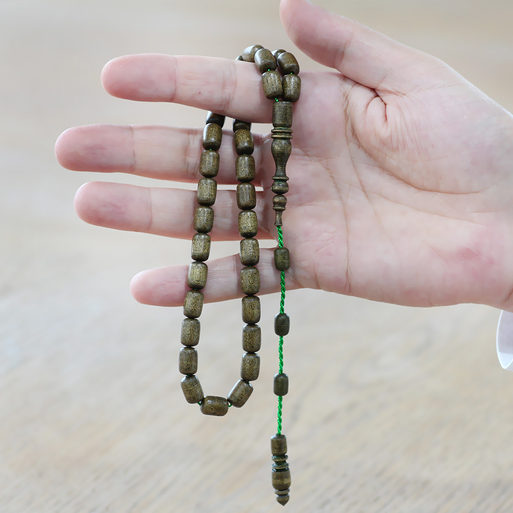Şimşir Ağacı Tesbih - Koleksiyonluk - Sistemli - Usta İşçilikli - Yeşil Renk - Kapsül Kesim