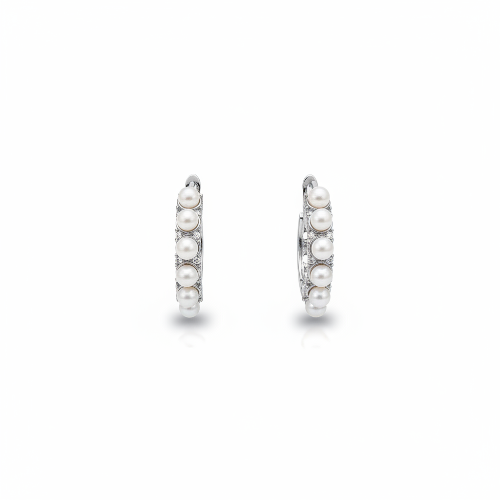 Sıralı İnci Taşlı Gümüş Renk Yarım Tur 925 Ayar Gümüş Kadın Küpe