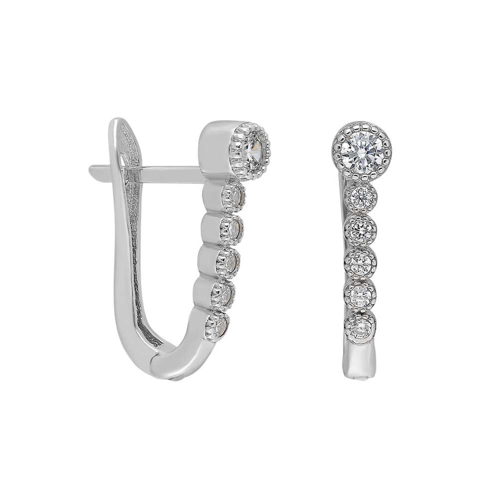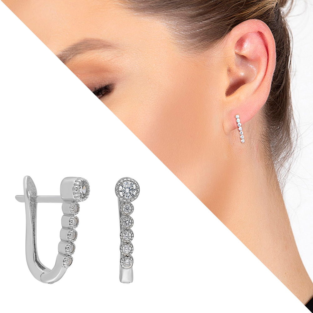 Sıralı Zirkon Taşlı 925 Ayar Gümüş Kadın Küpe - 1