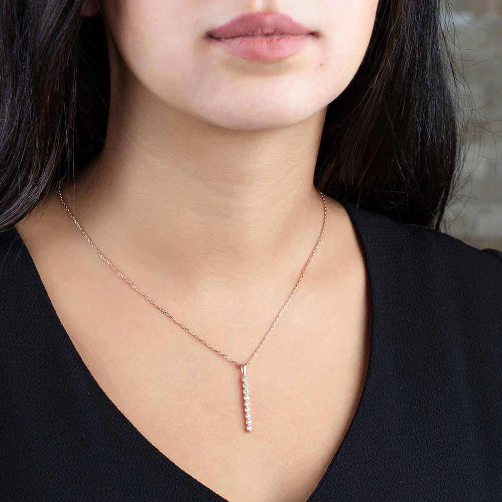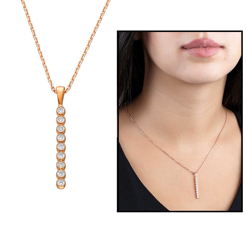 Sıralı Zirkon Taşlı Altın Renk 925 Ayar Gümüş Bayan Kolye - 5