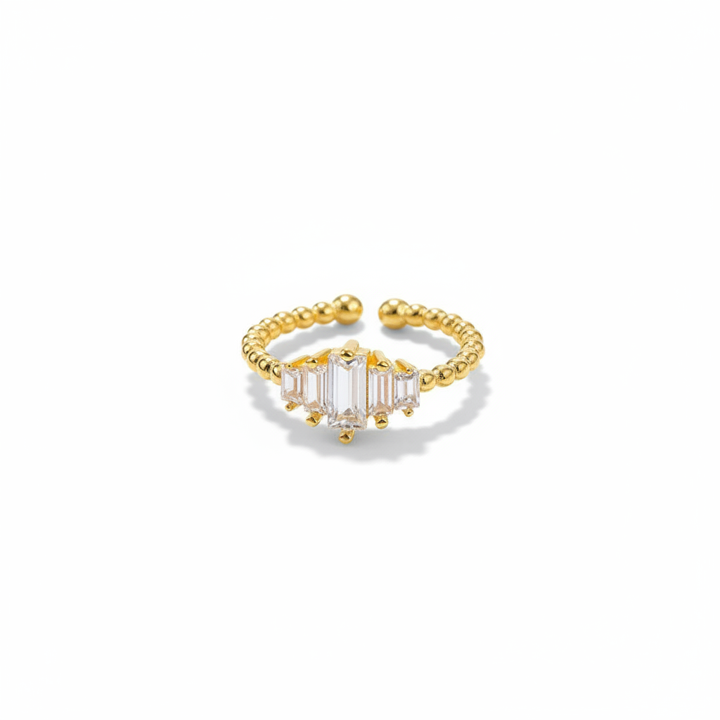 Sıralı Zirkon Taşlı Popcorn Tasarım Altın Renk Ayarlanabilir Ölçü 925 Ayar Gümüş Kadın Beştaş Yüzük