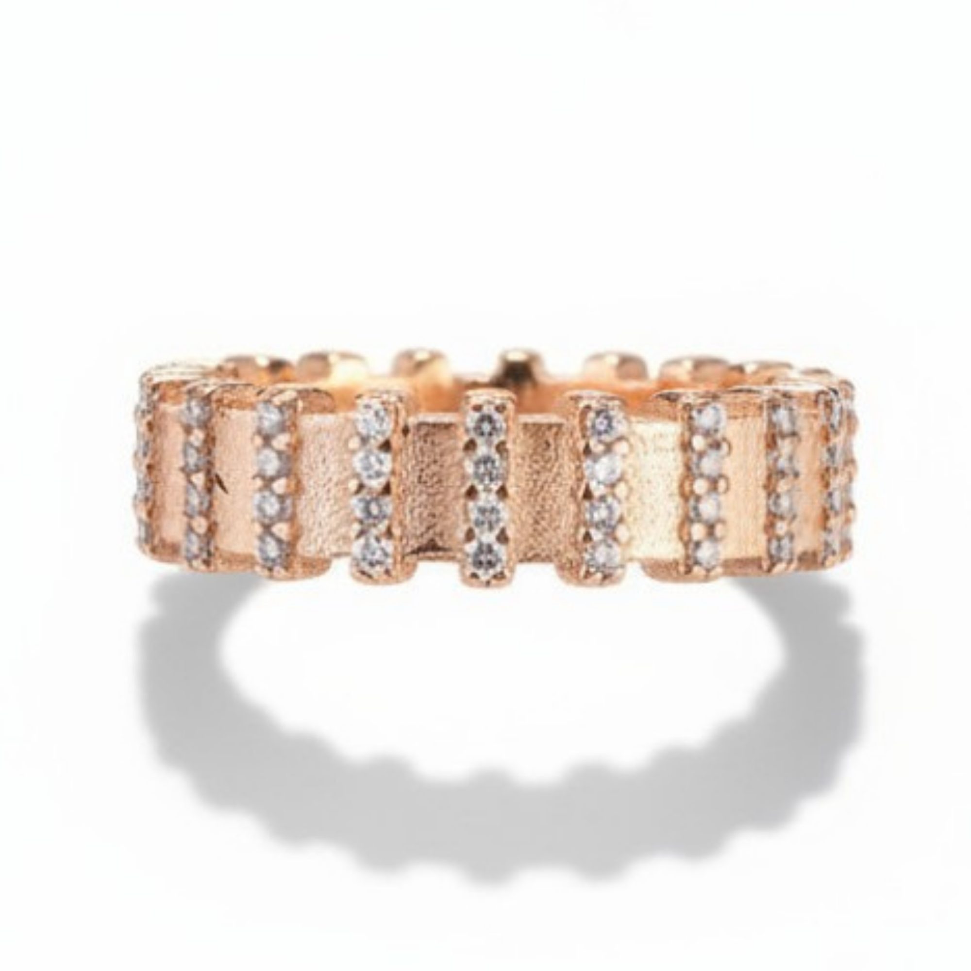 Sıralı Zirkon Taşlı Rose Renk Ayarlanabilir Ölçü Yarım Tur 925 Ayar Gümüş Kadın Yüzük