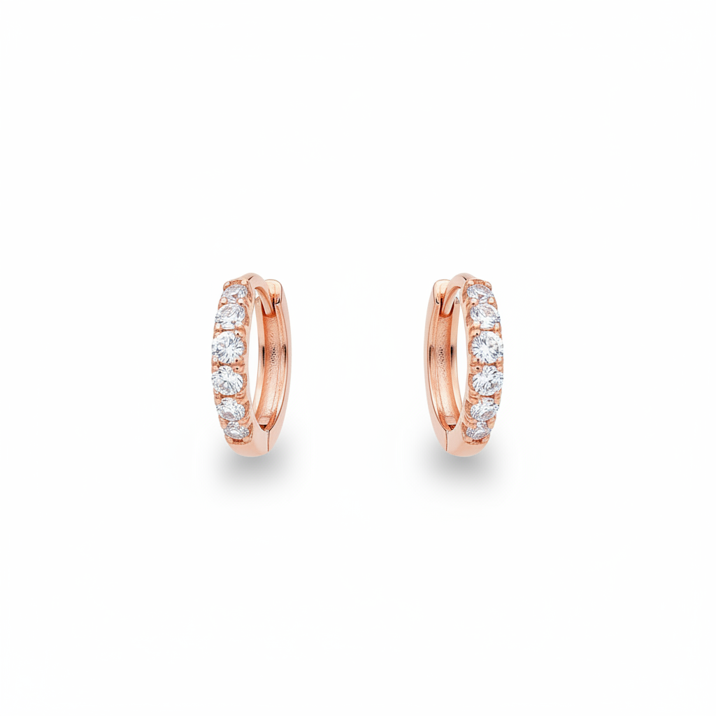 Sıralı Zirkon Taşlı Rose Renk Tam Tur 925 Ayar Gümüş Kadın Küpe