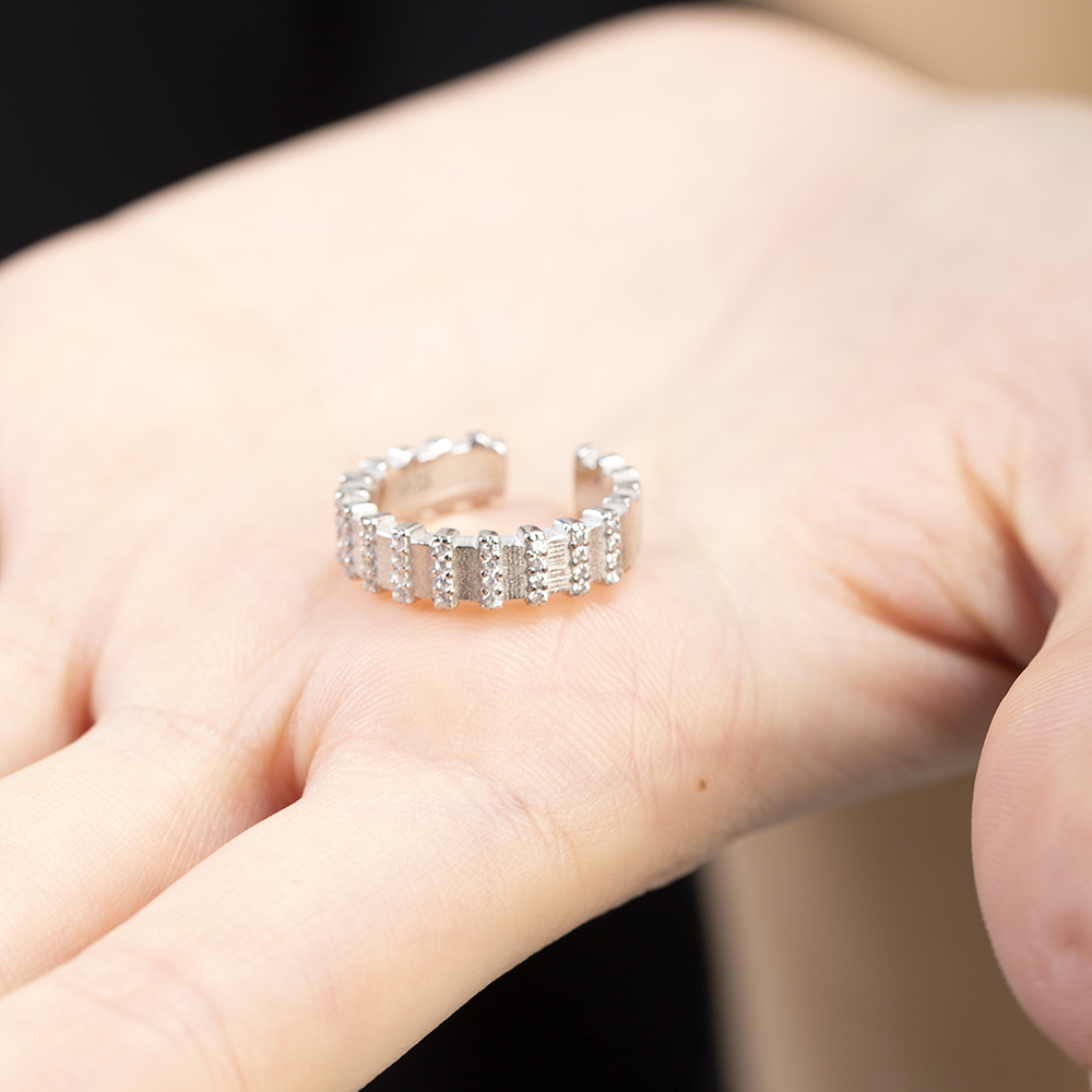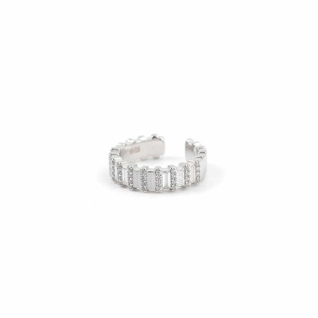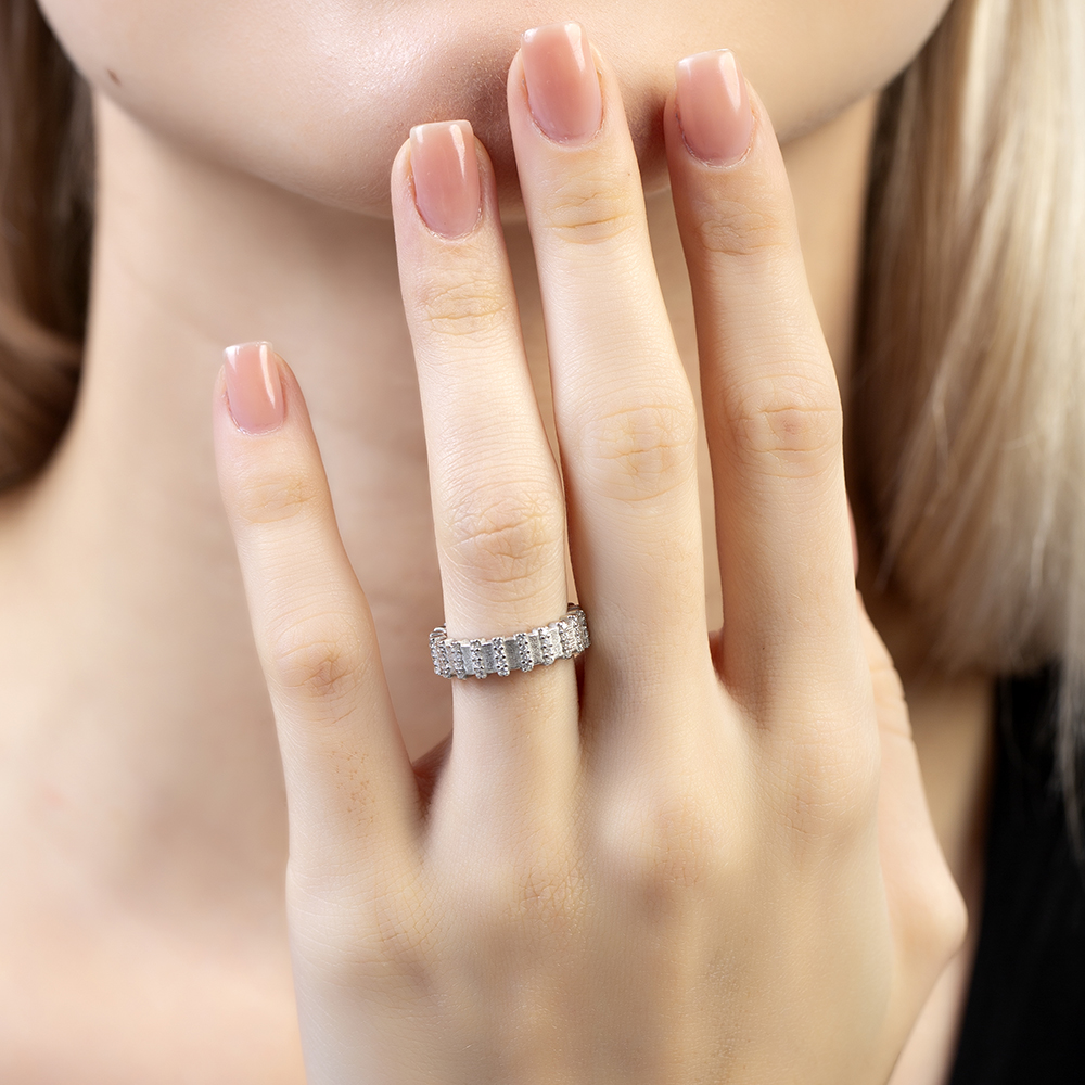 Sıralı Zirkon Taşlı Gümüş Renk Ayarlanabilir Ölçü Yarım Tur 925 Ayar Gümüş Kadın Yüzük