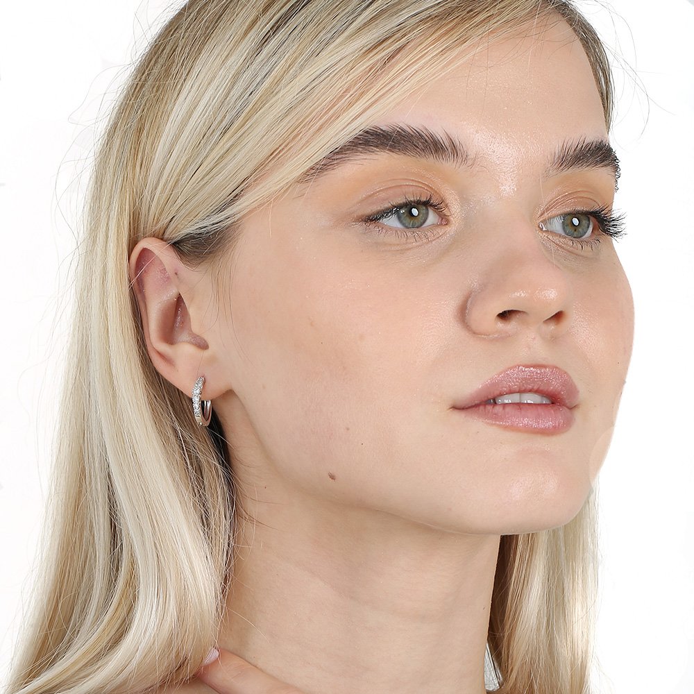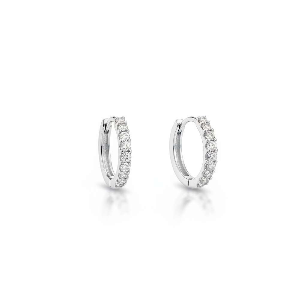 Sıralı Zirkon Taşlı Gümüş Renk Tam Tur 925 Ayar Gümüş Kadın Küpe