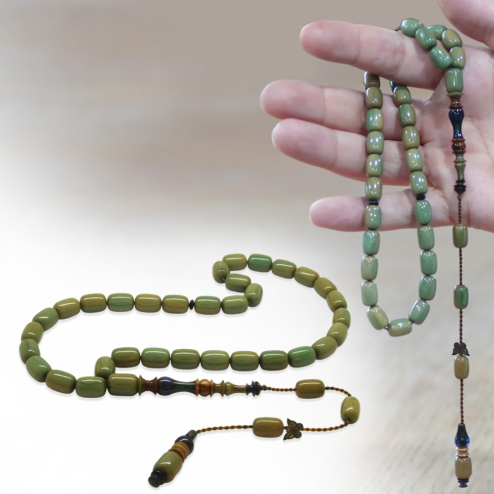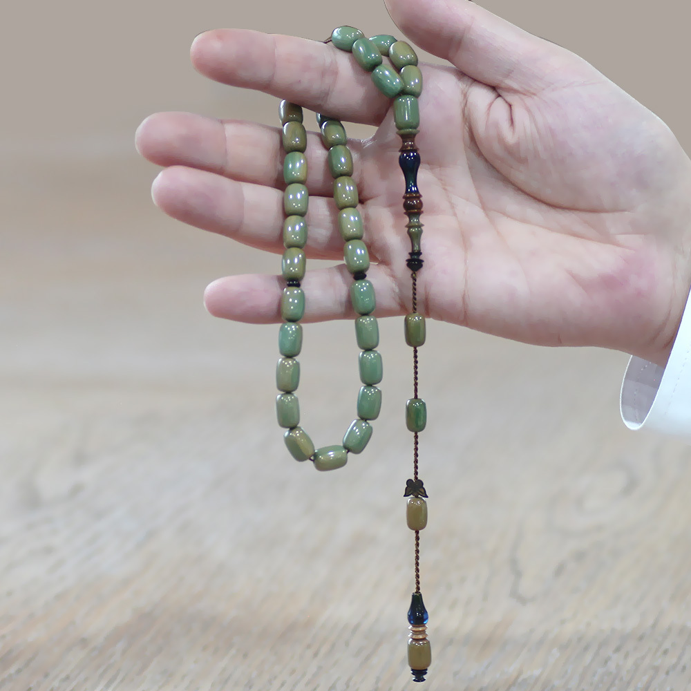 Sistemli Her Tanesi Usta İşçilikli İmame Hitame Kuka Kapsül Kesim Turkuaz Mavi Katalin Tesbih - 1