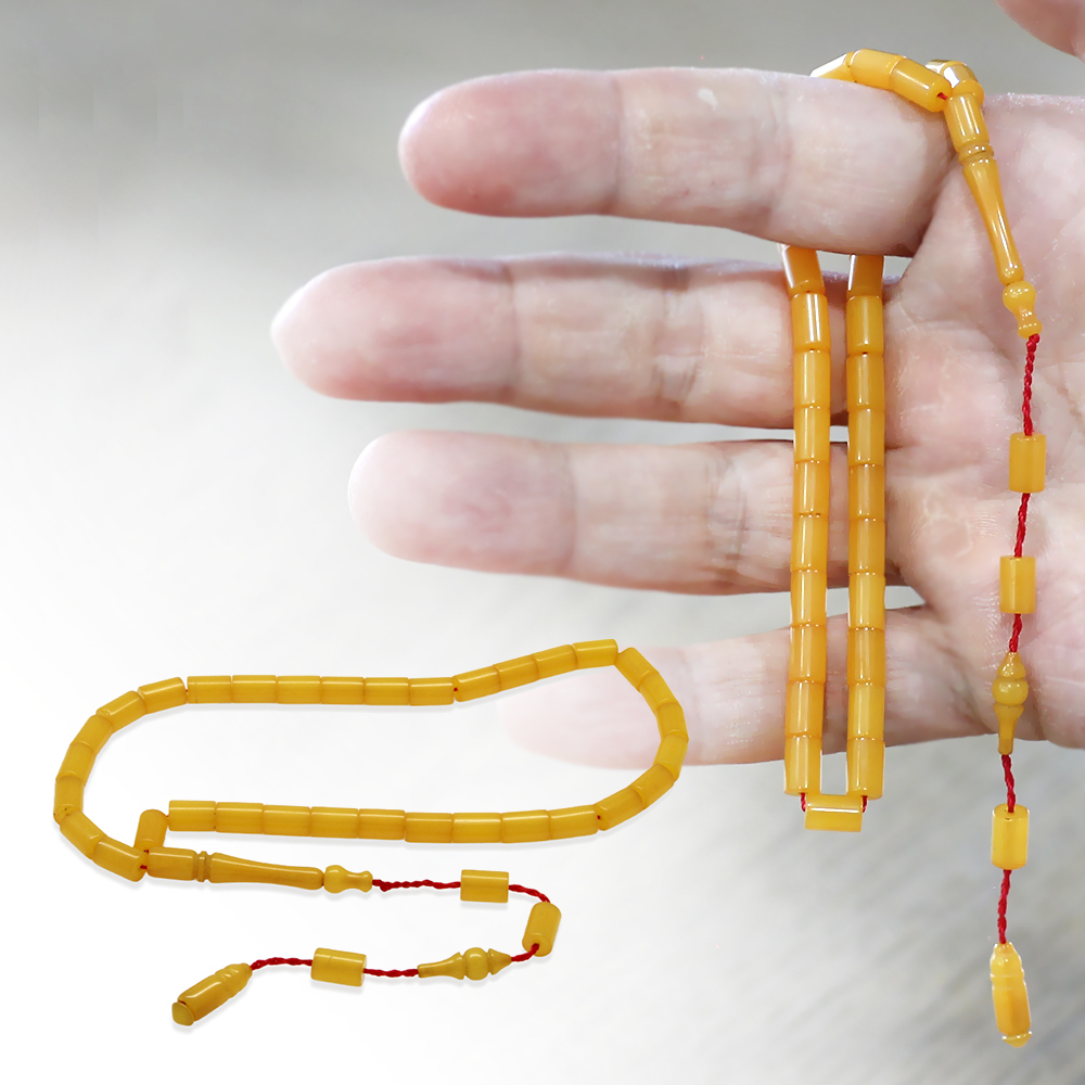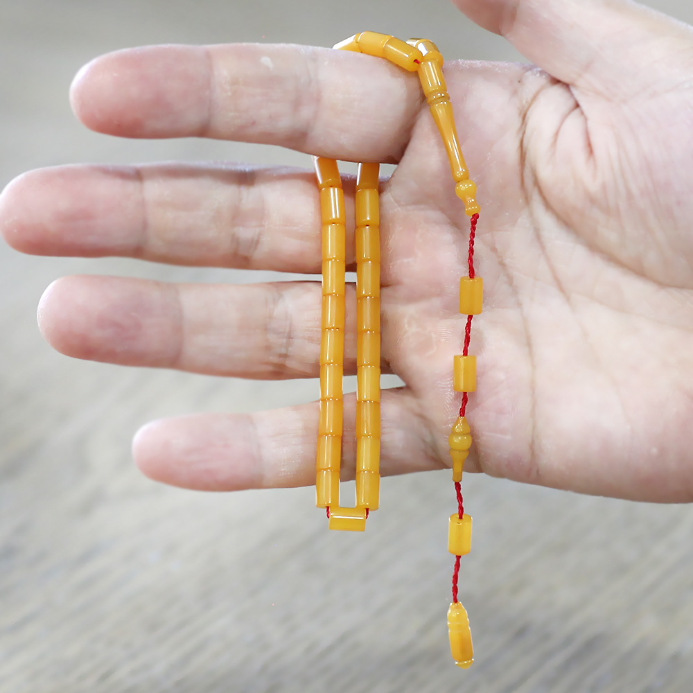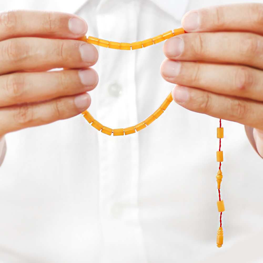 Sistemli Kesme Kesim Sarı Bilek Boy Ateş Kehribar Tesbih