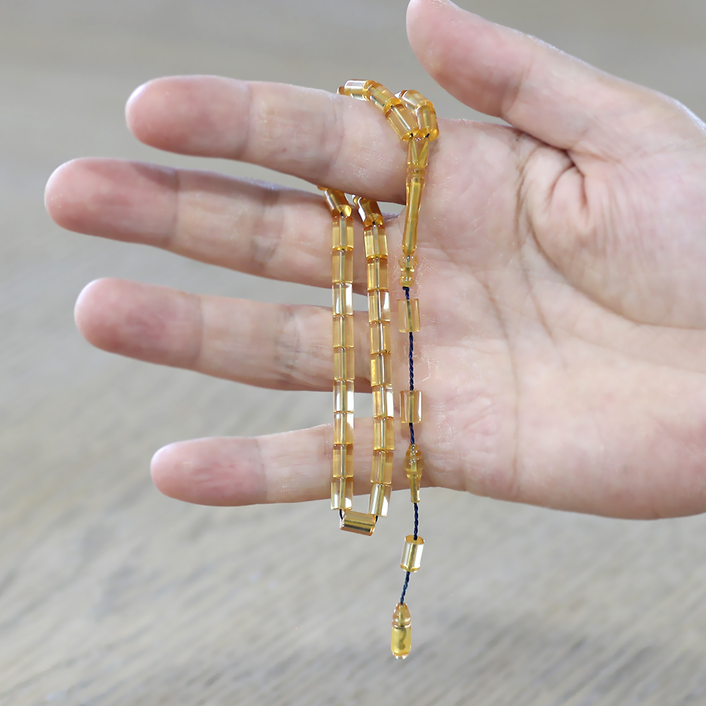 Sistemli Kesme Kesim Şeffaf Beyaz Bilek Boy Ateş Kehribar Tesbih