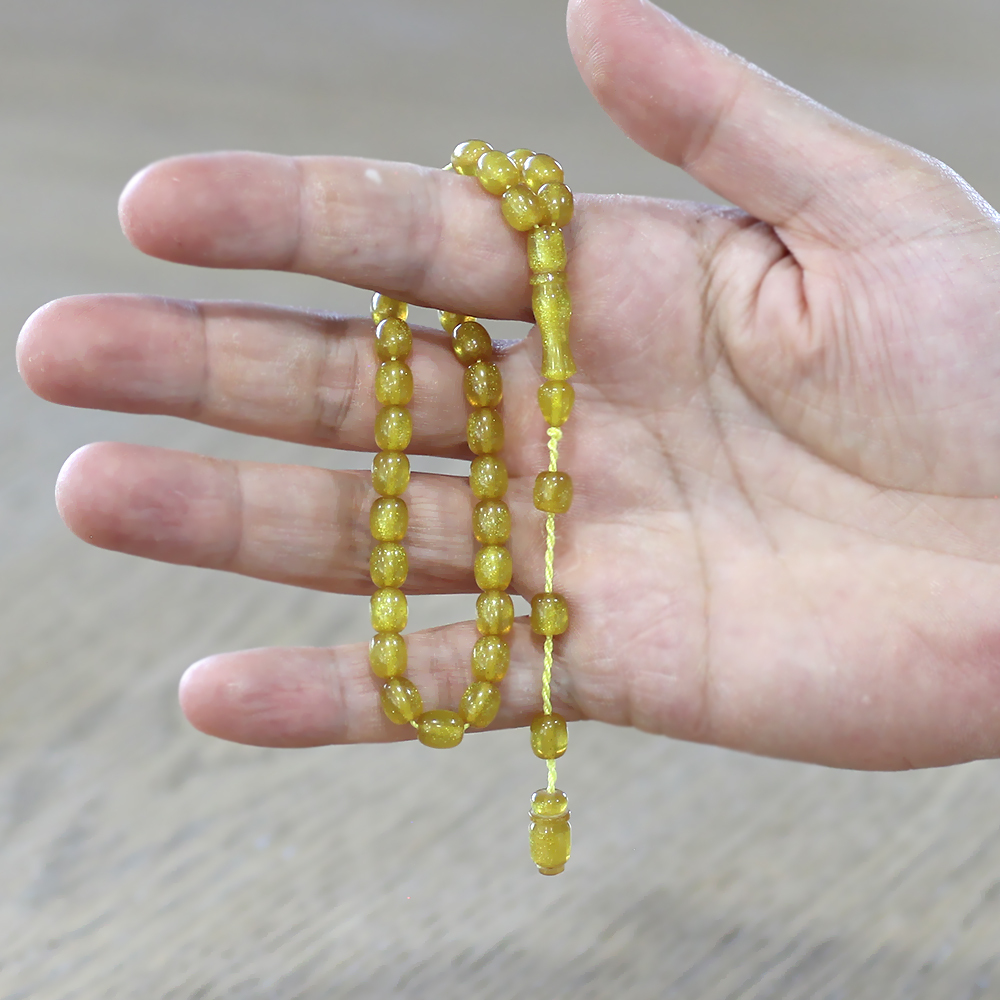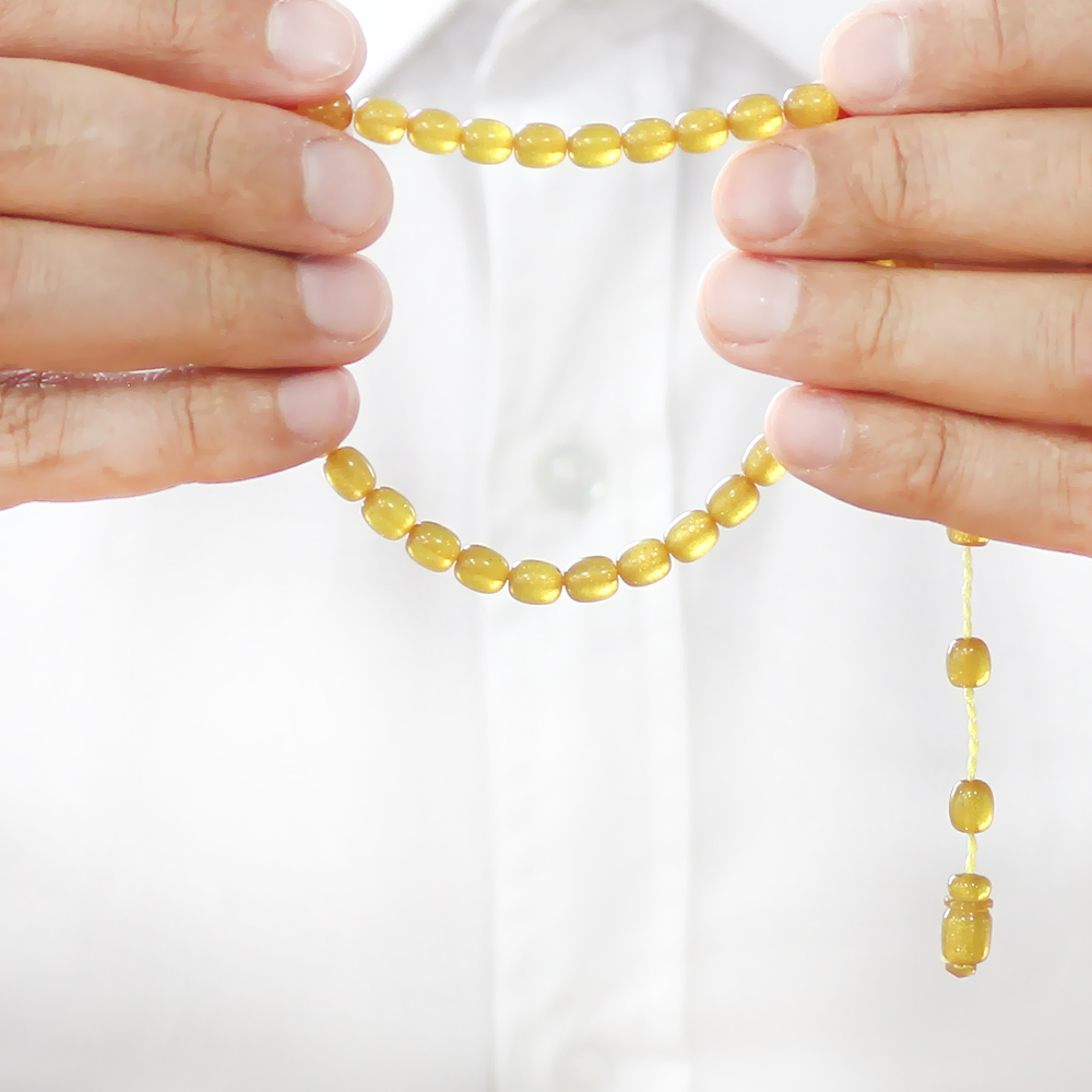 Sistemli Küp Kesim Bilek Boy Sedefli Sarı Ateş Kehribar Tesbih