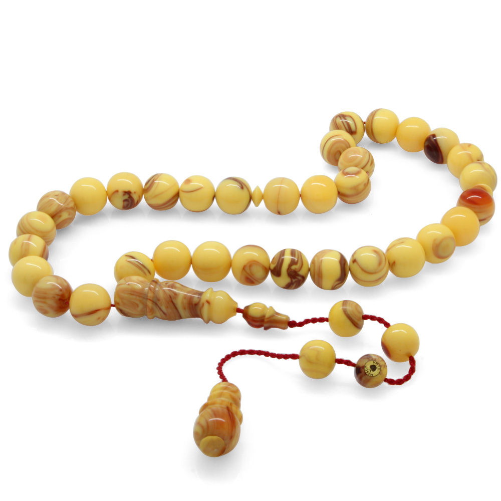 Sistemli Küre Kesim Büyük Boy Kırmızı-Beyaz Çubuk Sıkma Kehribar Tesbih - 1